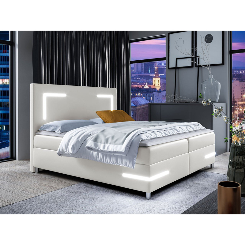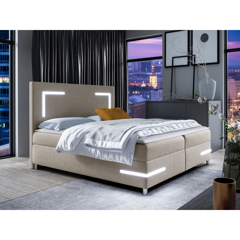 Hledáte moderní postel do své ložnice? Máme něco pro vás! Kontinentální postel Fronasa LED. Moderní charakter postele je ovlivněn minimalistickou formou, jejímž základem jsou kovové nohy a osvětlení LED. Osvětlení je namontováno na čele a na konstrukci. Osvětlení vytvoří v ložnici příjemnou atmosféru.