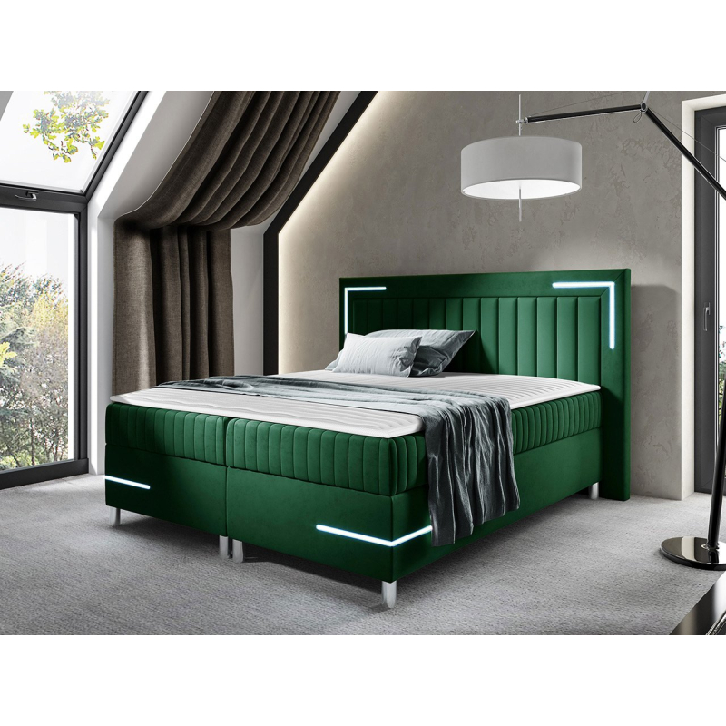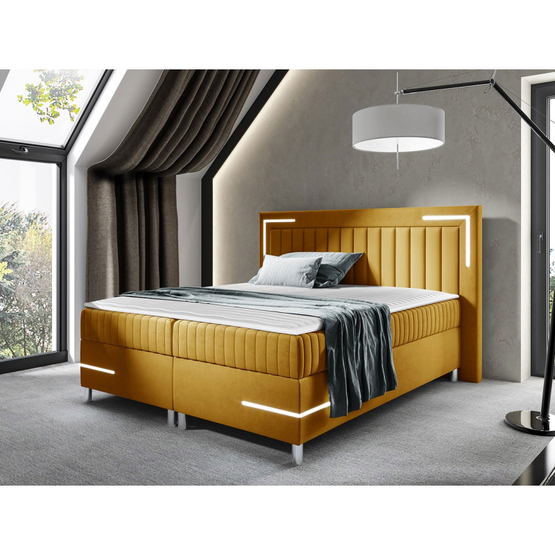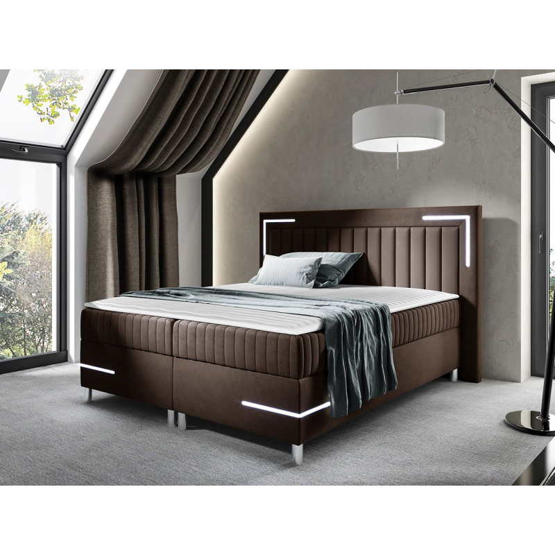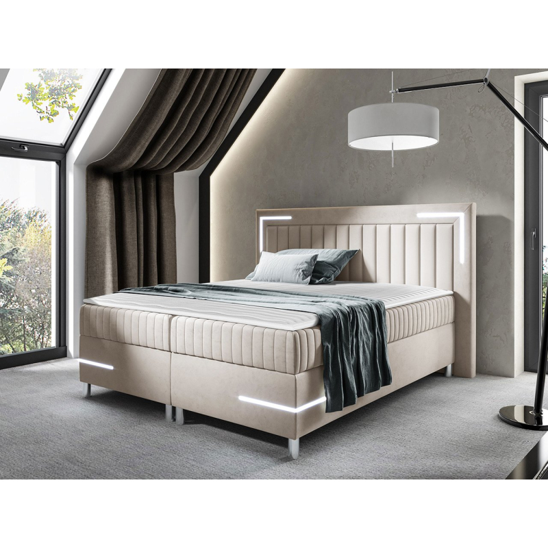 Designový charakter tohoto modelu podtrhují LED vložky v čelu postele a ložním boxu. Spolu s dekorativním prošíváním zatraktivňují postel a s ní i celou ložnici.
