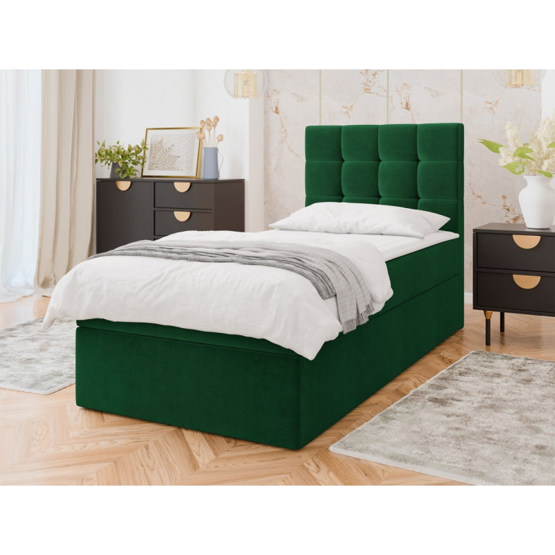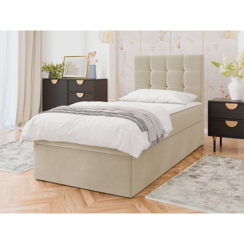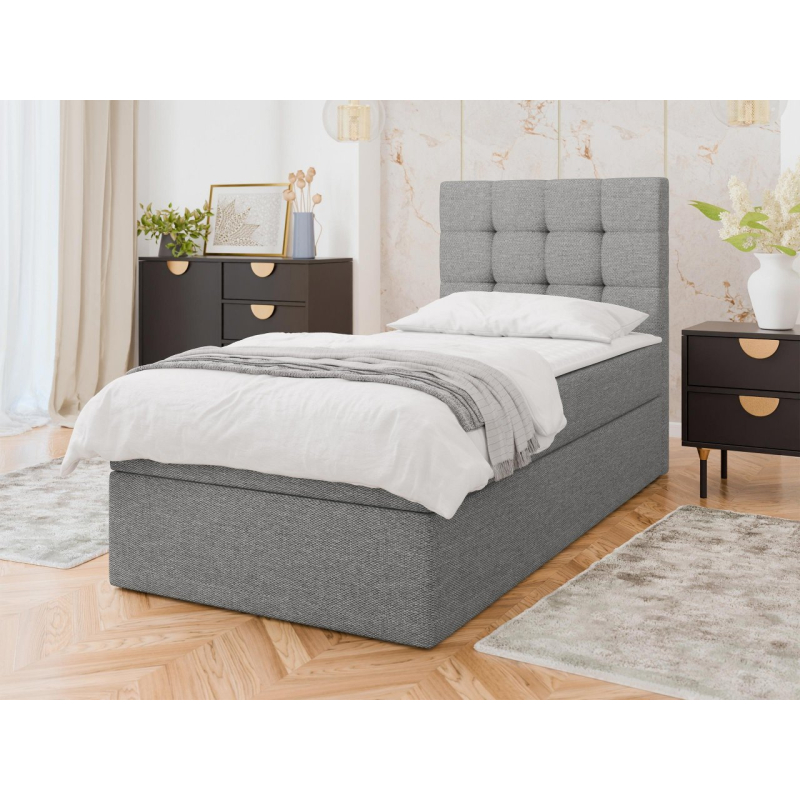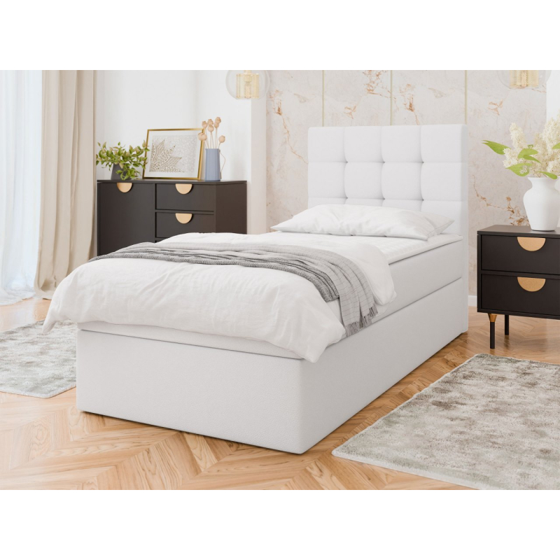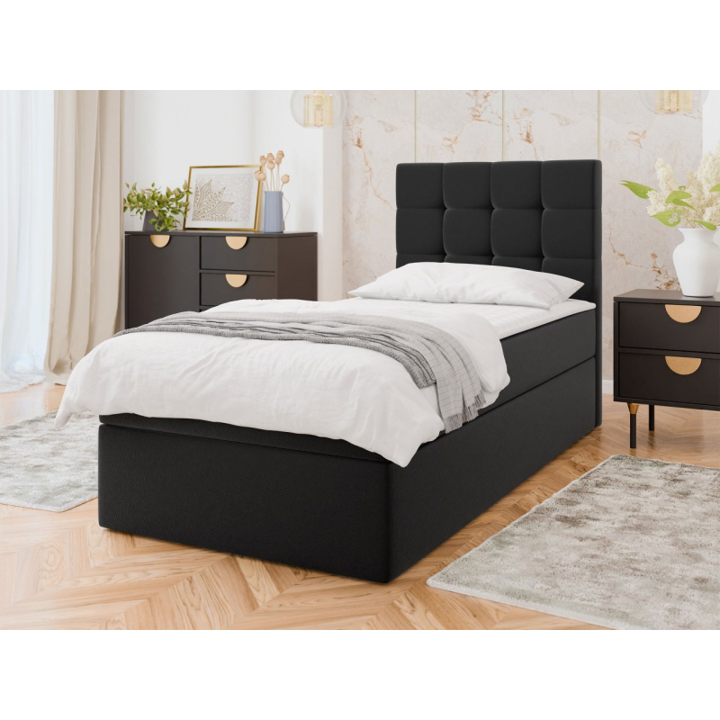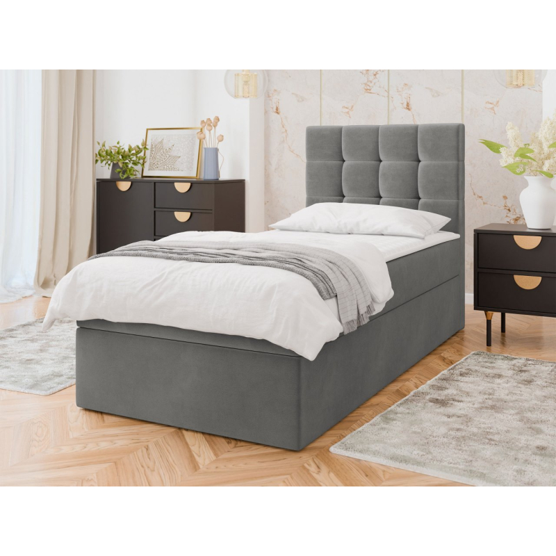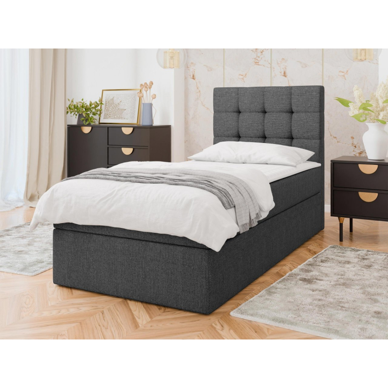 Měkce čalouněná kontinentální postel Cinema Single je pohodlným kusem nábytku pro každodenní spaní. Středně tuhá hlavní matrace poskytuje pohodlí při celonočním odpočinku. Vybavený povrchovým topperem poskytuje základ pro bezpečný a bezstarostný spánek. Další výhodou tohoto kusu nábytku je velký kontejner na lůžkoviny. Uvnitř prostorné úložné přihrádky je také místo pro kufr nebo náhradní deky.