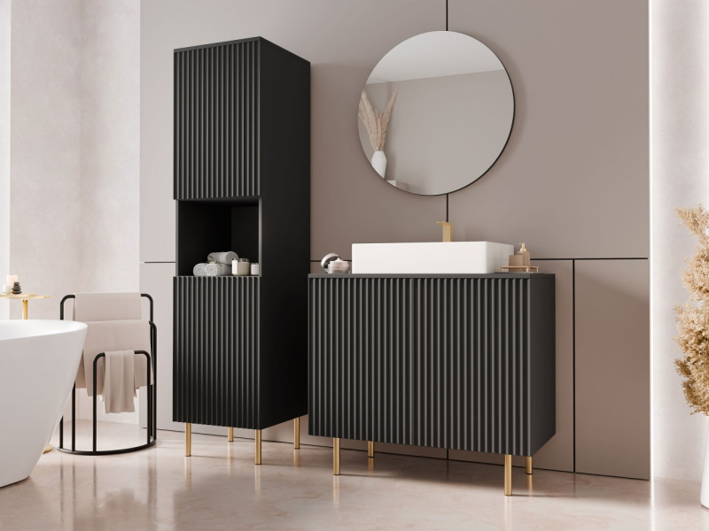 Koupelnový nábytek nabízí dostatek prostoru pro kosmetiku a čisticí prostředky. Můžete si zde uložit i ručníky a drobné dekorační předměty. Modely se vyznačují otevíracím systémem push-to-open. Absence úchytek zdůrazňuje jejich moderní design.