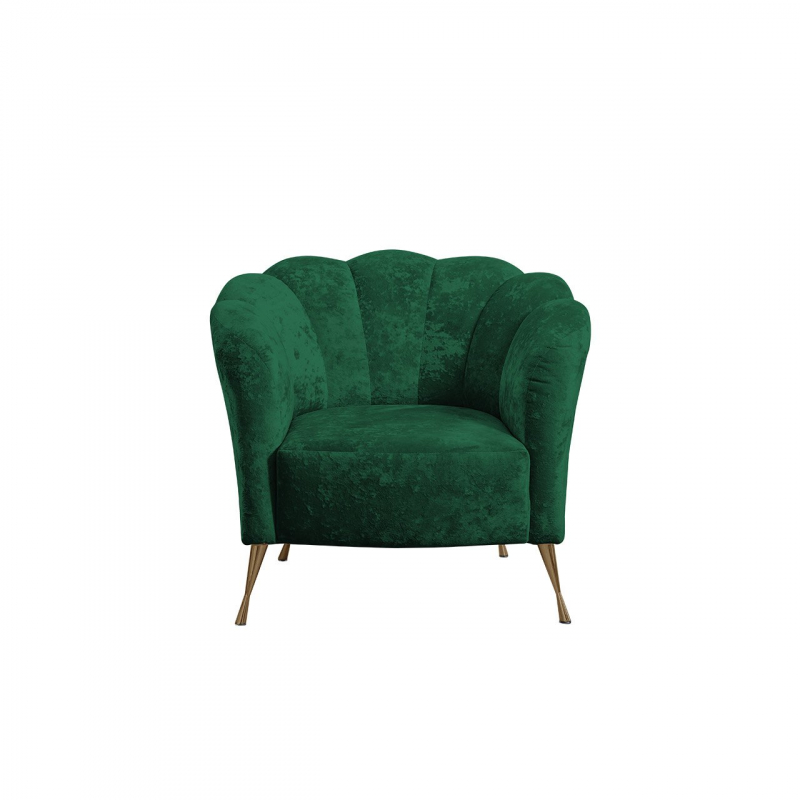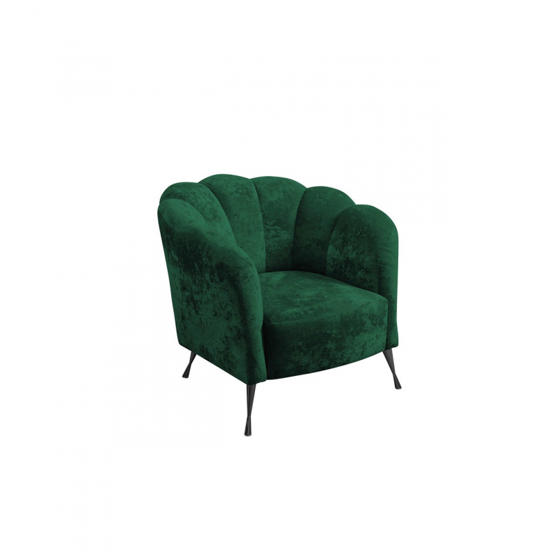 Udělejte si pohodlí v křesle Terkaz. Tento model zaujme svým elegantním tvarem a neuvěřitelným pohodlím. Stylové křeslo Terkaz se vyznačuje širokým sedákem a velmi měkkým opěradlem, díky čemuž je odpočinek v něm velmi pohodlný a příjemný. Krásné křeslo ve tvaru mušle je potaženo příjemnou sametovou látkou. Kolekce Eureka je mimořádně měkká a odolná. Vodotěsná, nehořlavá a šetrná ke zvířatům - bude perfektní jako potah na křeslo v obýváku. Křeslo bylo vyrobeno z kvalitních komponentů, díky kterým bude ozdobou vašeho obývacího pokoje na dlouhou dobu. Díky stylovým, kovovým nožičkám získává nábytek jedinečný charakter. Křeslo Terkaz má harmonický tvar a proporce, díky čemuž se bude hodit do větších i menších místností.