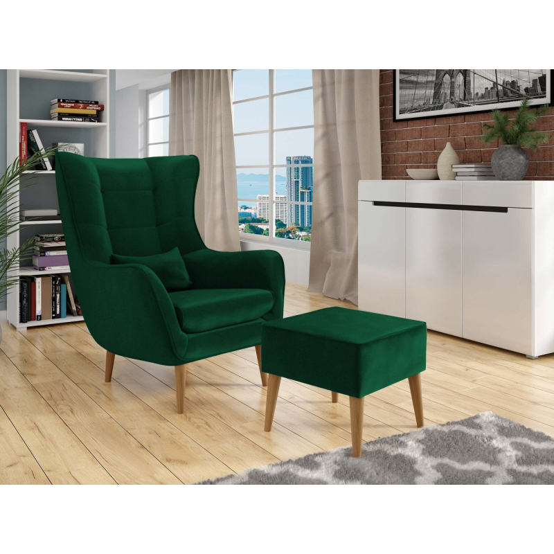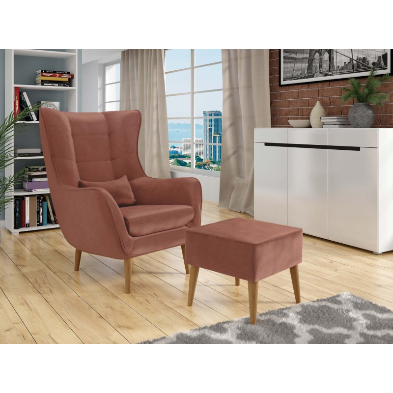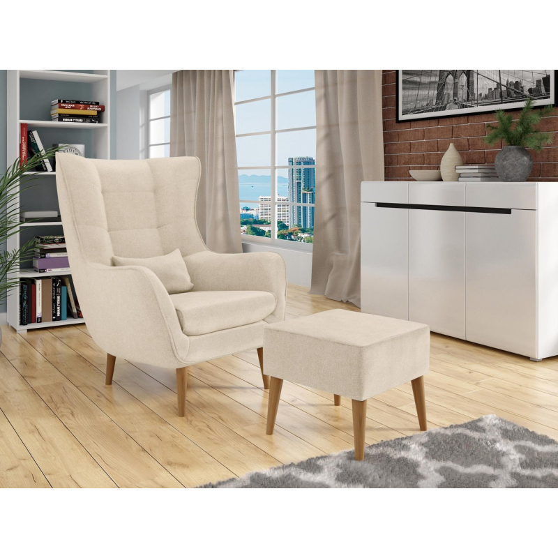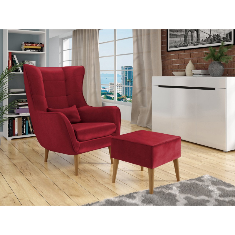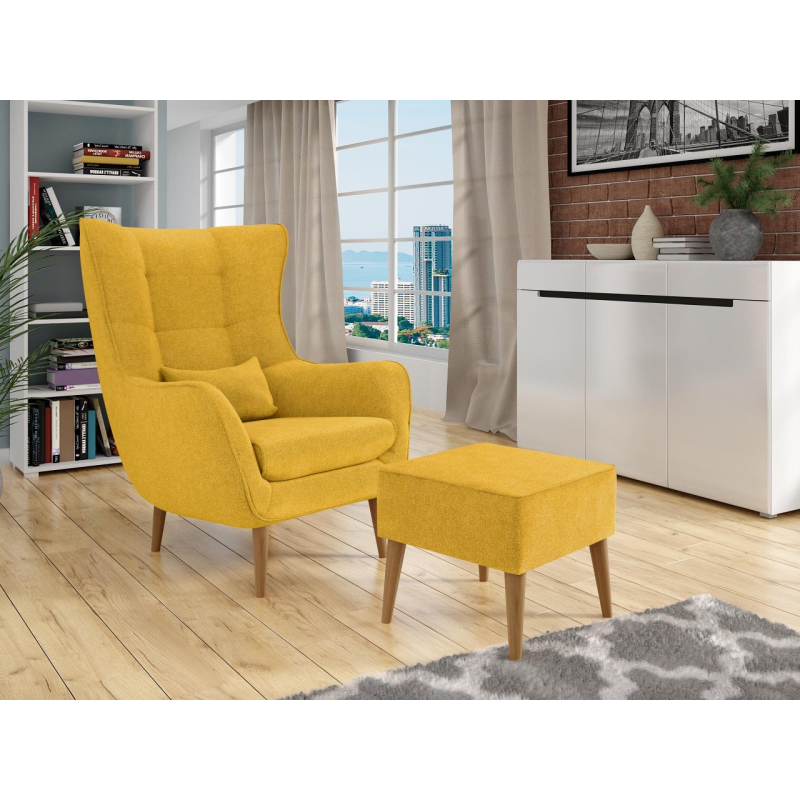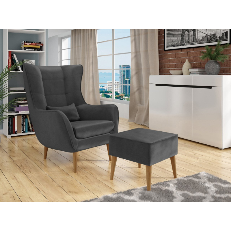 Součástí sady je také podnožka, která zpříjemní lenošení na křesle, a malý polštářek.