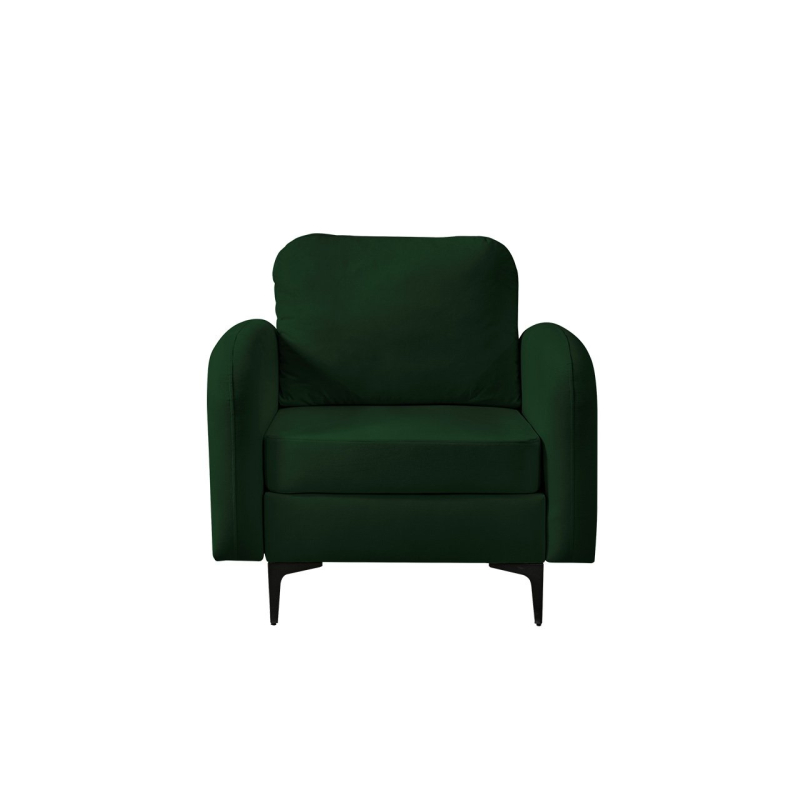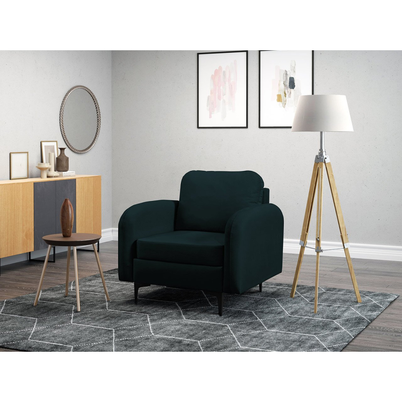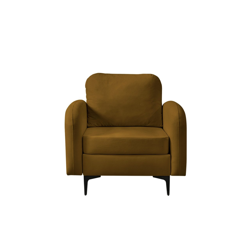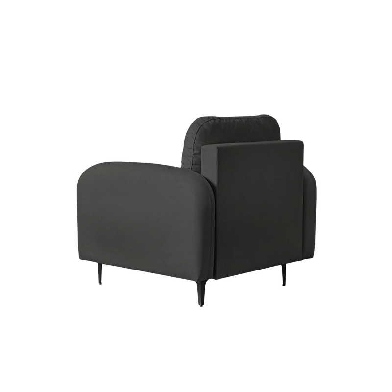 Díky svému designu lounge křeslo vybočuje z návrhů nabízených na trhu. Má vysoké černé kovové nohy, které dodávají nábytku osobitý charakter. Čalounění opěradla látkou umožňuje volně stojící použití v jeho interiéru.