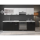 Horní část nábytku jsou závěsné skříňky. Jeden z nich má částečně zasklený předek, díky kterému můžete zobrazit například nádobí nebo kávové šálky. Následující prvky horní části budou užitečné pro skladování potravinářských výrobků. Dolní část obsahuje skříň pod dřezem, tenká skříň s zásuvkové skříňky s běžným otočnými dveřmi a skříní pro troubu.