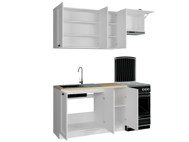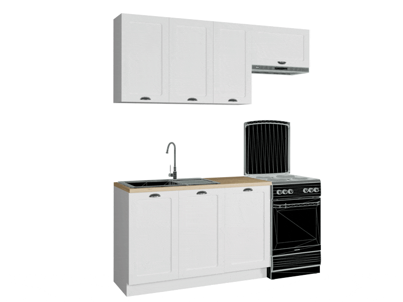 Kompaktní kuchyně Luis 180 spojuje všechny podstatné prvky potřebné pro přípravu jídel. Prostorné horní skříňky v kombinaci se spodními skříňkami nabízí dostatek místa pro odkládání kuchyňského nádobí i potravin.