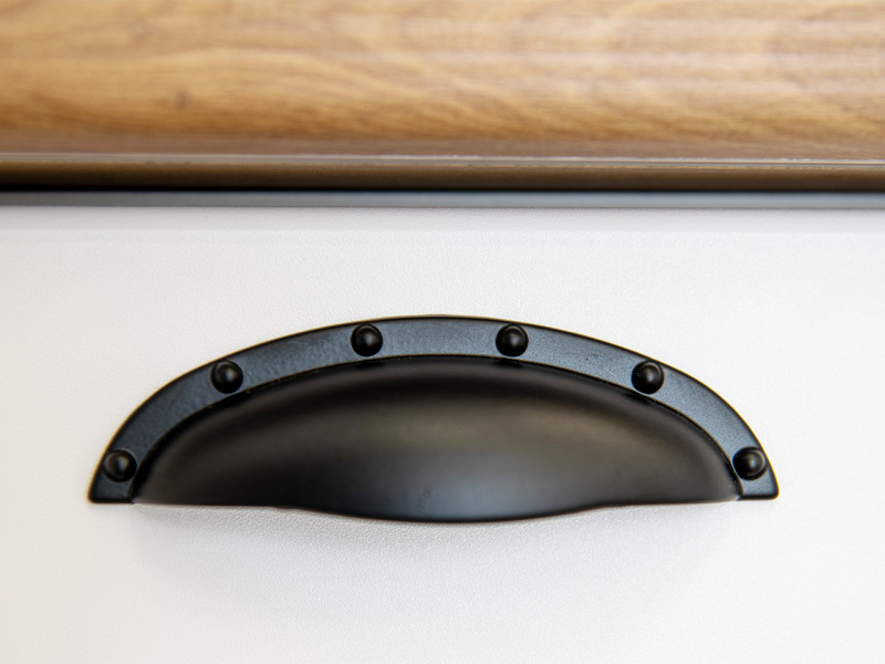 Jedinečný design nábytku zvýrazňují čelní plochy doplněné elegantními úchyty.