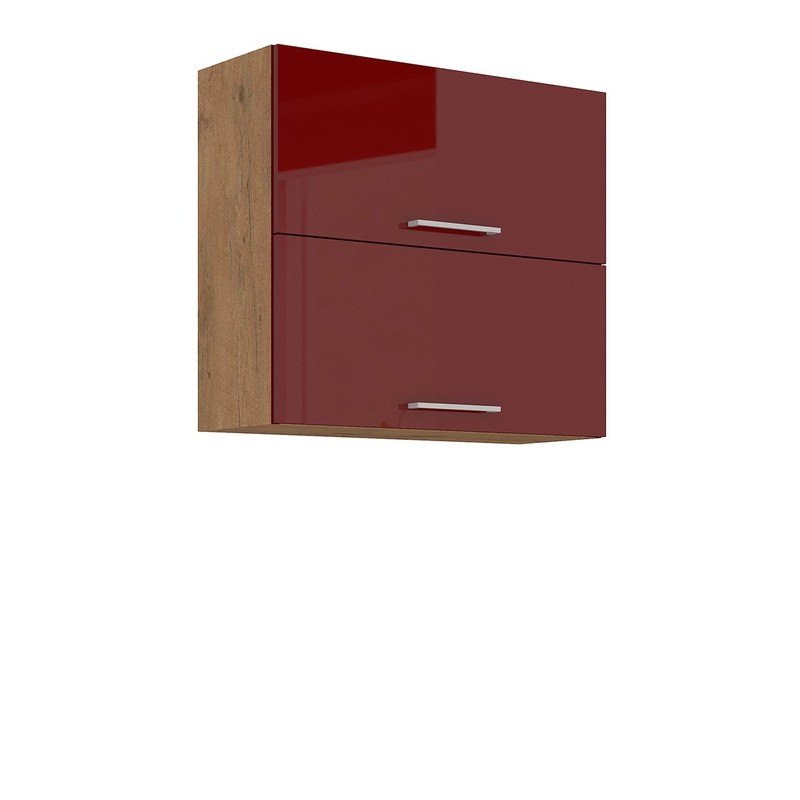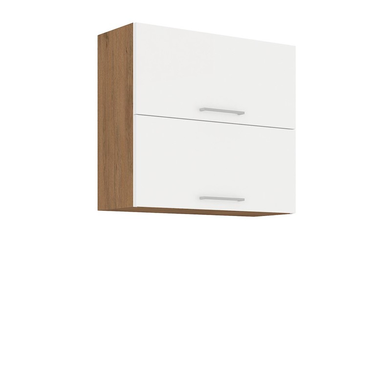 Fronty skřínky se otevírají směrem nahoru. Vybavení plynovým pístem výrazně usnadňuje každodenní používání nábytku k odhalení obsahu skříně, vše, co musíte udělat, je zvednout přední část lehce nahoru jednou rukou. Tichý uzavírací systém zase zajistí bezpečné a tiché uzavření skříně.