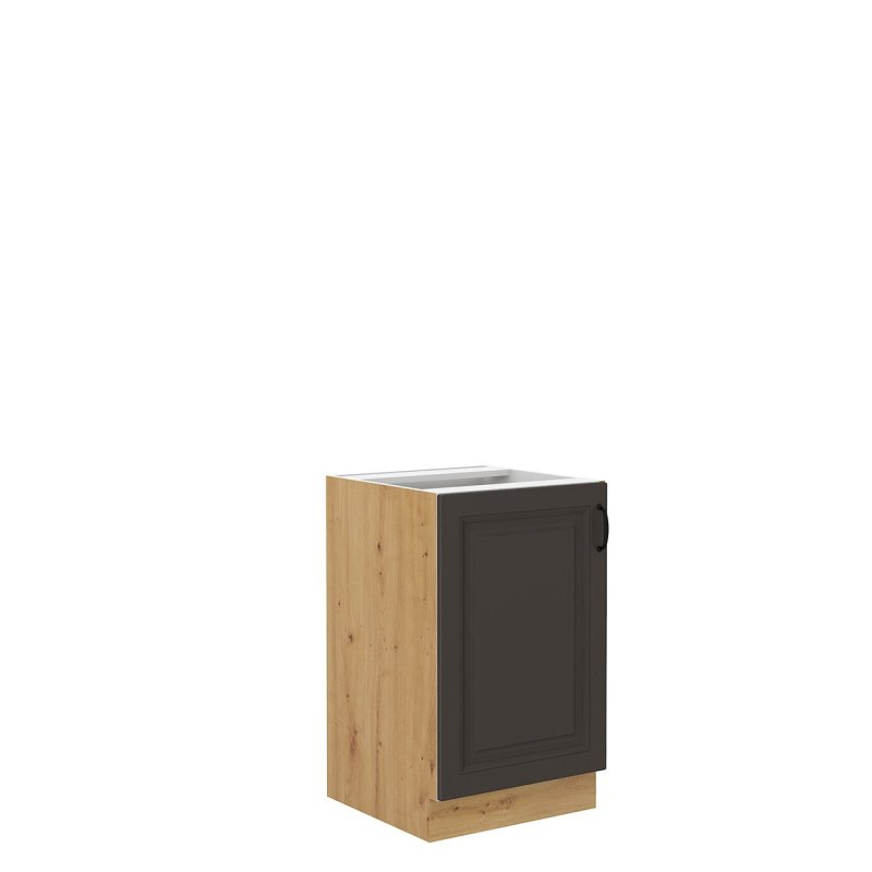 Kuchyňská skříňka pod dřez Retroline 50 ZL 1F BB je praktické a funkční řešení, které pomáhá optimalizovat kuchyňský prostor. Černé kovové úchyty dodávají eleganci a styl. Jejich pevná konstrukce zajišťuje pohodlné a bezpečné otevírání a zavírání a jejich minimalistický design dokonale doplňuje moderní kuchyňský dekor.