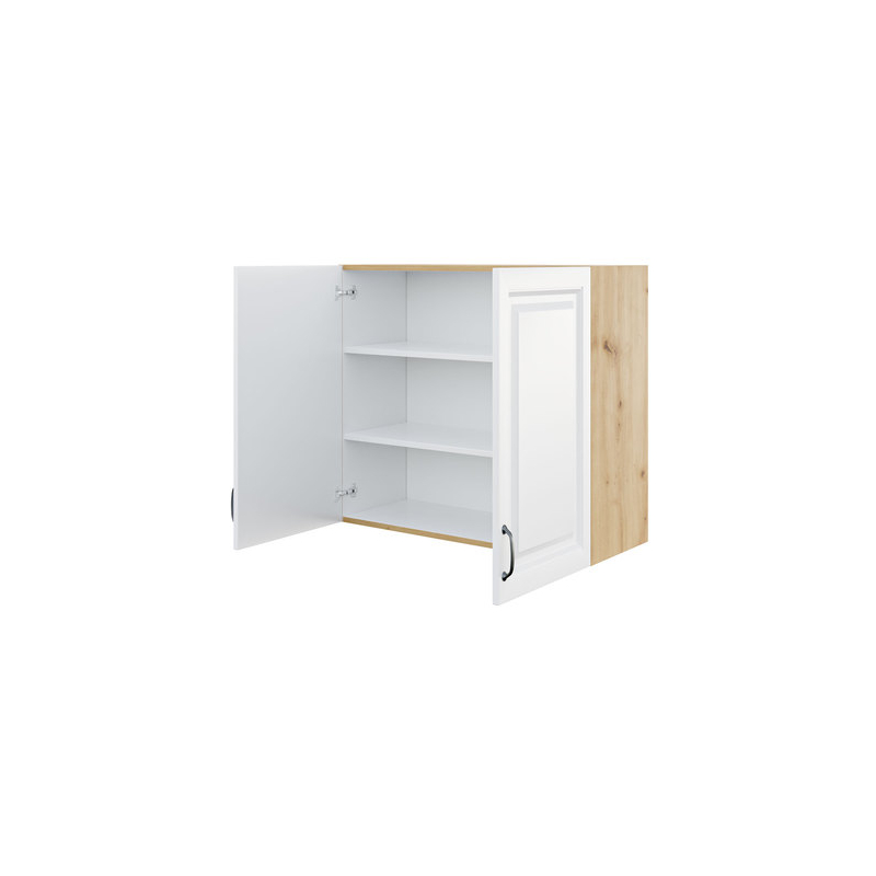 Dvoudveřová uzavřená kuchyňská skříňka Retroline 80 G-72 2F poskytuje dodatečný úložný prostor. Její interiér nabízí praktické police pro organizaci kuchyňského příslušenství včetně koření a jiných doplňků.