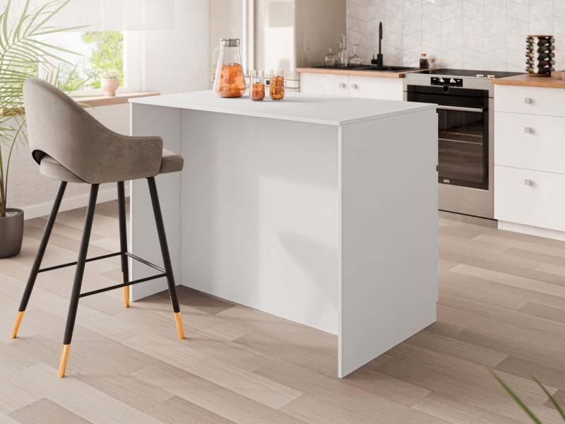 Díky své formě může tento kus nábytku sloužit jako dodatečná pracovní deska, místo pro podávání jídel nebo praktický snídaňový stůl. Jeho pevné zpracování a univerzální design dělají z ostrůvku perfektní doplněk moderních, skandinávských a minimalistických interiérů, který doplňuje ostatní kuchyňské skříňky.