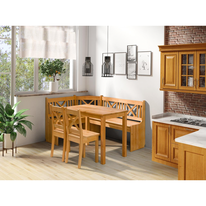 Kuchyňský kout + stolek Santiago se židlemi je vynikající volbou pro velkou rodinu, která chce spolu obědvat nebo večeřet. Souprava zabírá poměrně málo místa.