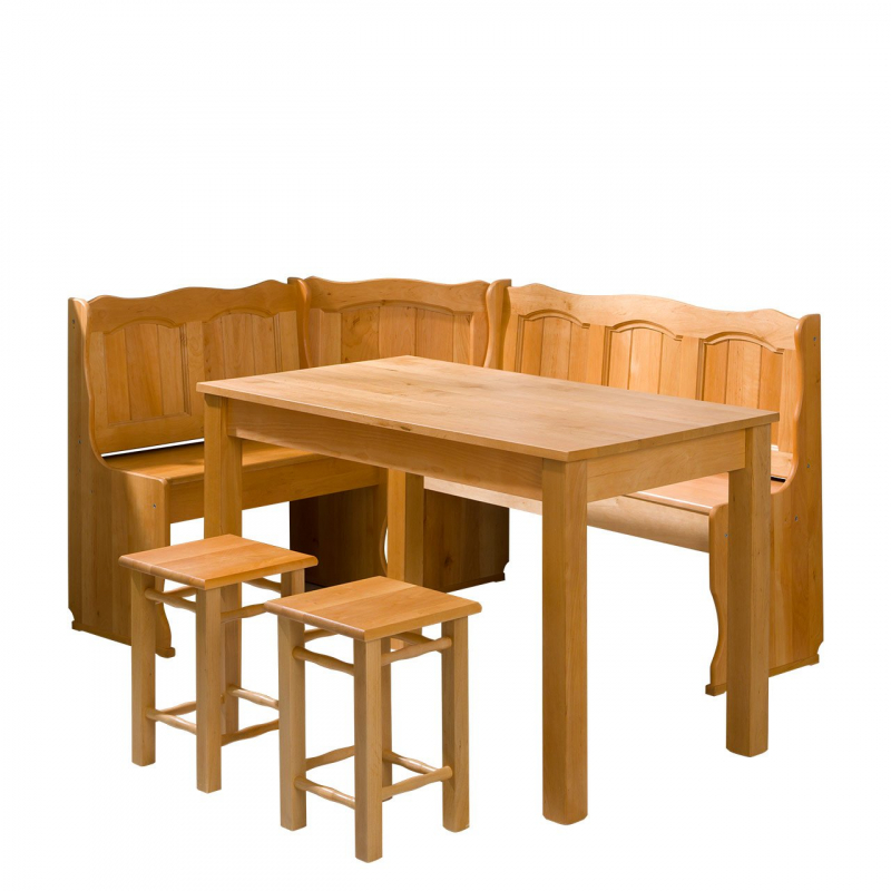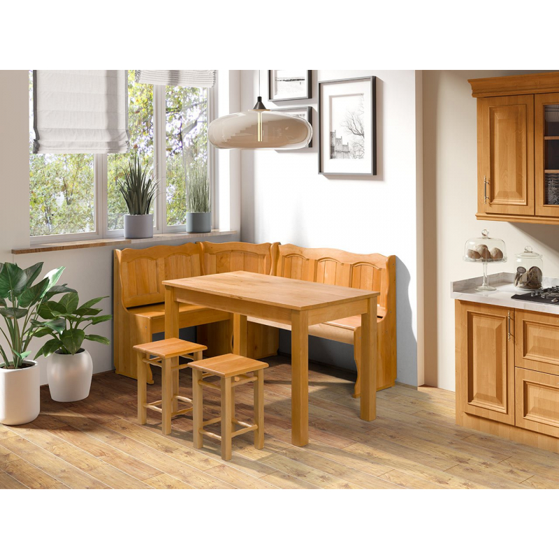 Kuchyňský kout je vyroben ze dřeva, což zaručuje kvalitu výrobku. Výhodou nábytku je také čalouněné opěradlo lavice a dva prostorné úložné prostory skryté uvnitř lavice.