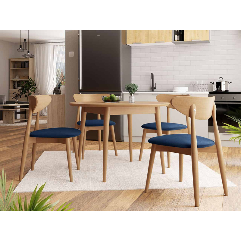 Souprava obsahuje čtyři židle s čalouněnými sedadly. Opěradlo ve tvaru lodi také umocňuje pocit pohodlí. Židle stojí na vysokých nohách z bukového dřeva a dokonale doplňují stůl.
