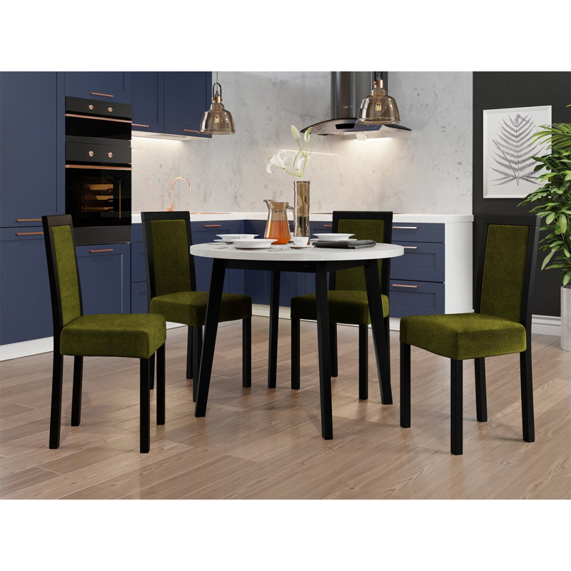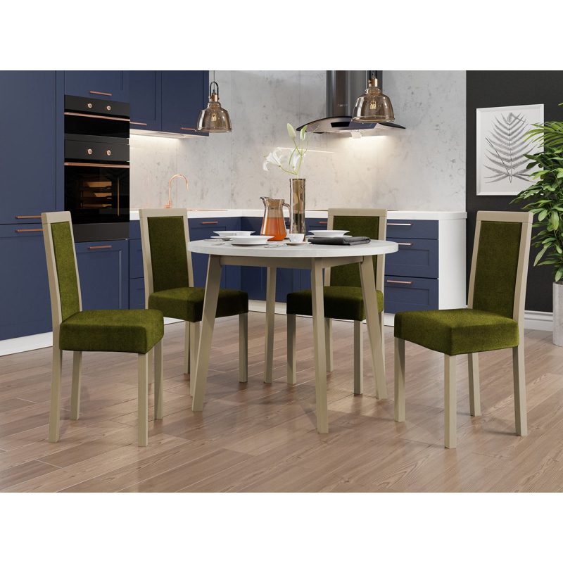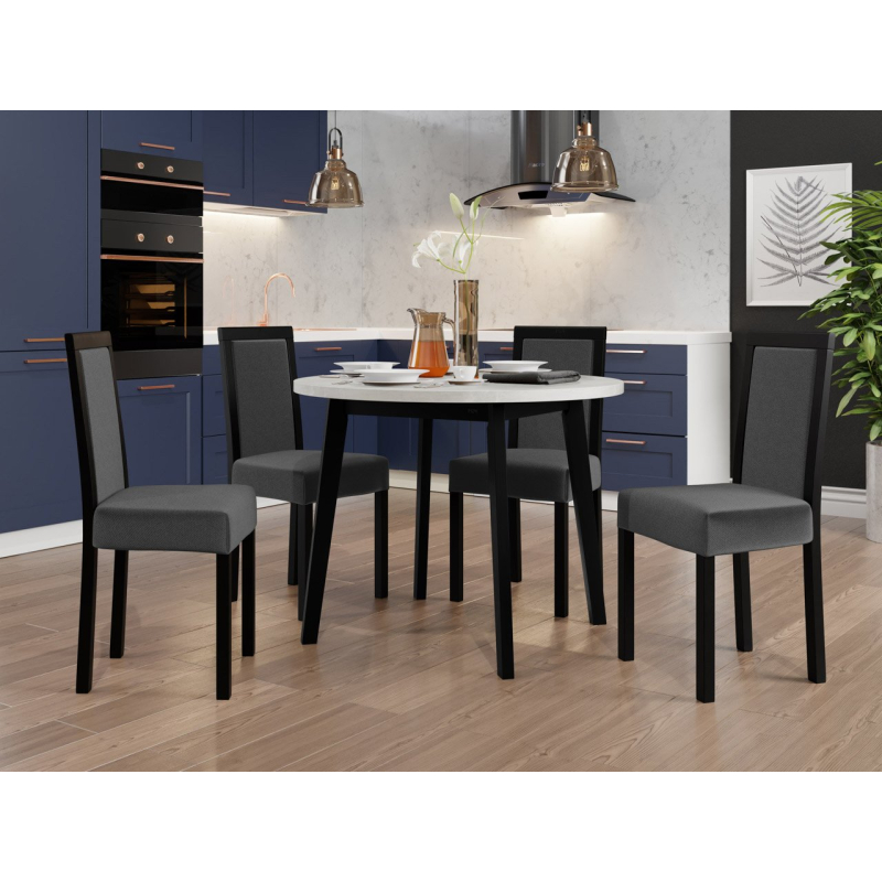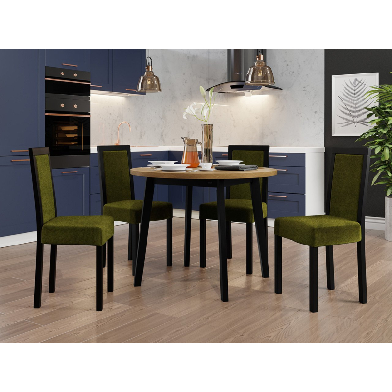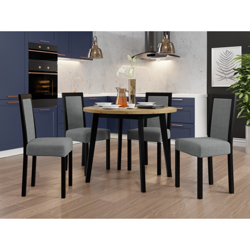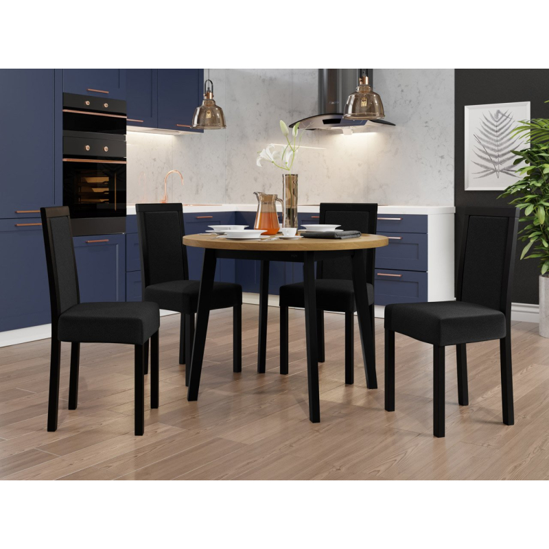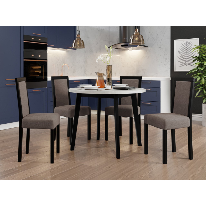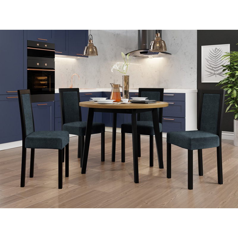 Náš krásný kulatý stůl se čtyřmi elegantními židlemi je ideální volbou pro vaši jídelnu nebo obývací pokoj. Dodá vašemu prostoru jedinečné kouzlo a vytvoří dokonalé místo pro setkání a společné stolování.