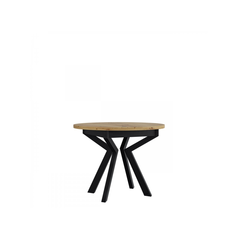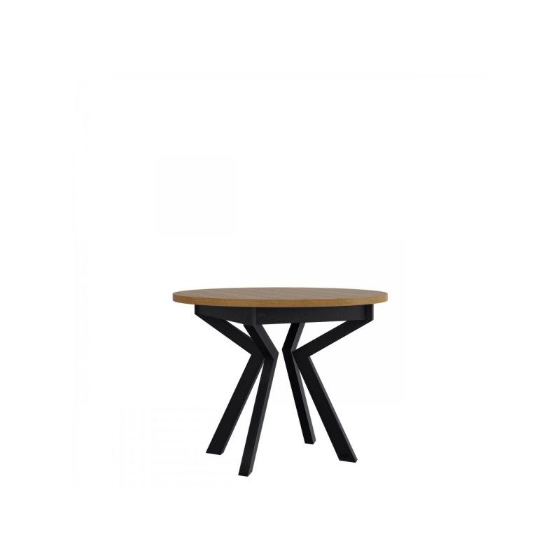 Kulatý jídelní stůl má moderní vzhled. Ideální do každé místnosti. Skromný, elegantní kus nábytku dodá interiéru přirozený a hřejivý charakter. Nábytek se vyznačuje geometrickými černými nohama, které mu dodávají lehkost a modernost. Stabilní základna vytváří zajímavý kontrast s pracovní deskou. Kulatý stůl bude skvělým doplňkem k minimalistickým i loftovým aranžmá.