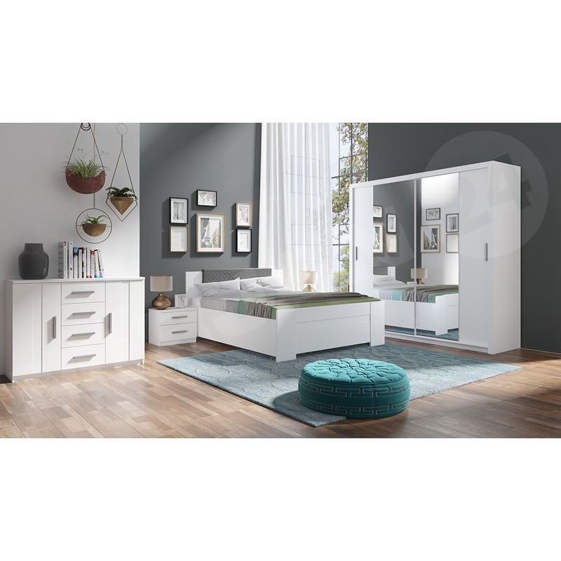 Nábytek do ložnice Kler VIII je klasická ložnicová souprava. Nábytek byl vyroben v nadčasové bílé barvě a má dekoraci v podobě úchytů. Součástí nábytku Kler je velká a prostorná posuvná skříň se zrcadlem na přední straně. Uvnitř se nachází množství polic a tyčí na šaty. Dalším prvkem je postel pro dva. Dodává se ve dvou variantách: s čalouněním nebo bez čalounění. Postel má velký kontejner na ložní prádlo a zvýšený rám. Souprava dále obsahuje komodu a dva noční stolky.