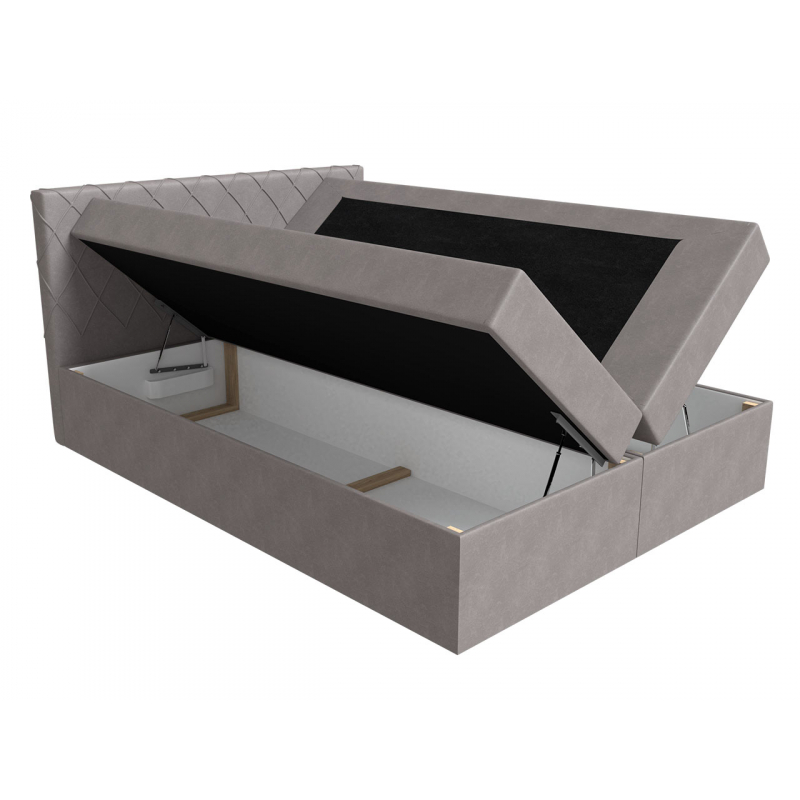 Tato postel má dva kontejnery na ložní prádlo - na obou stranách postele. Zvedají se pomocí pružin, díky čemuž je otevírání nádob velmi lehké a pohodlné.