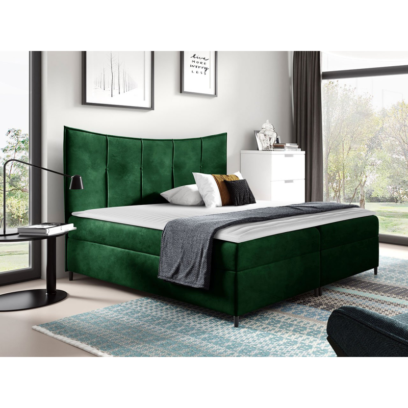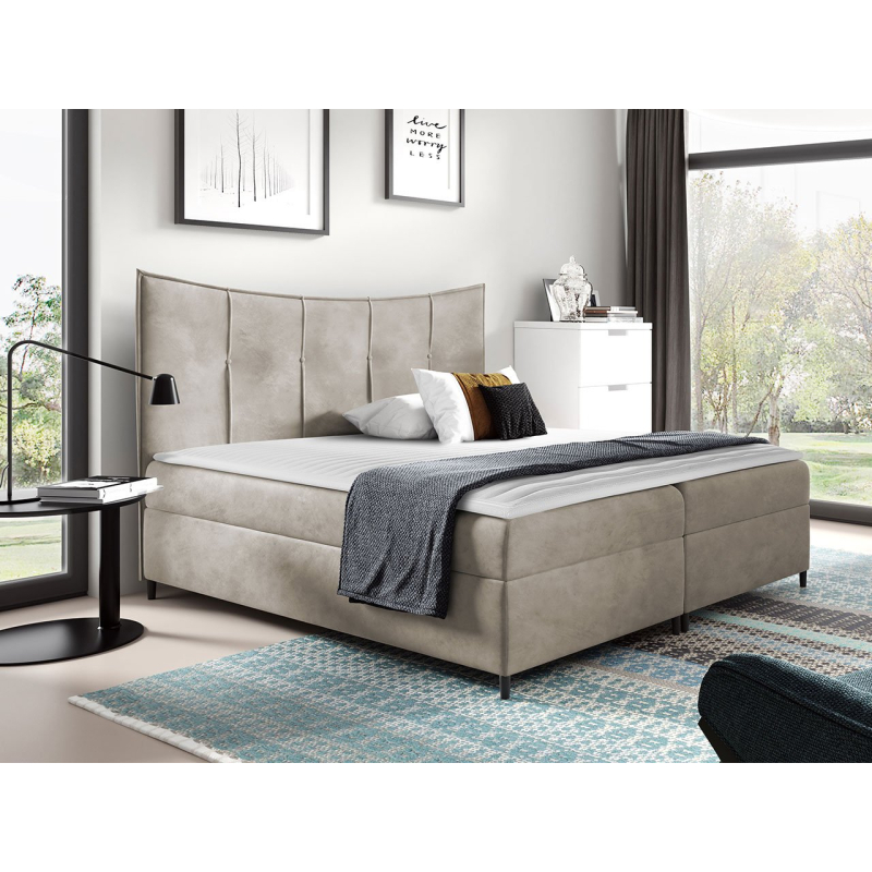 Kontinentální postel Wacjo upoutá pozornost svou originalitou a dodá místnosti osobitý charakter. To vše díky opěrce hlavy, která má zajímavý design a zároveň je měkká a pohodlná na používání. Ložnicová postel má dva úložné prostory, které se snadno otevírají díky použití speciálních pružin.