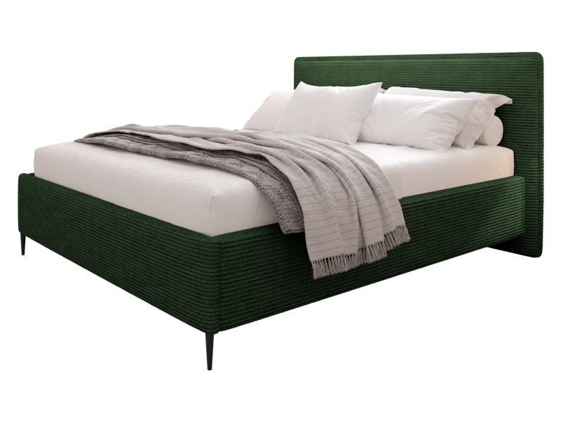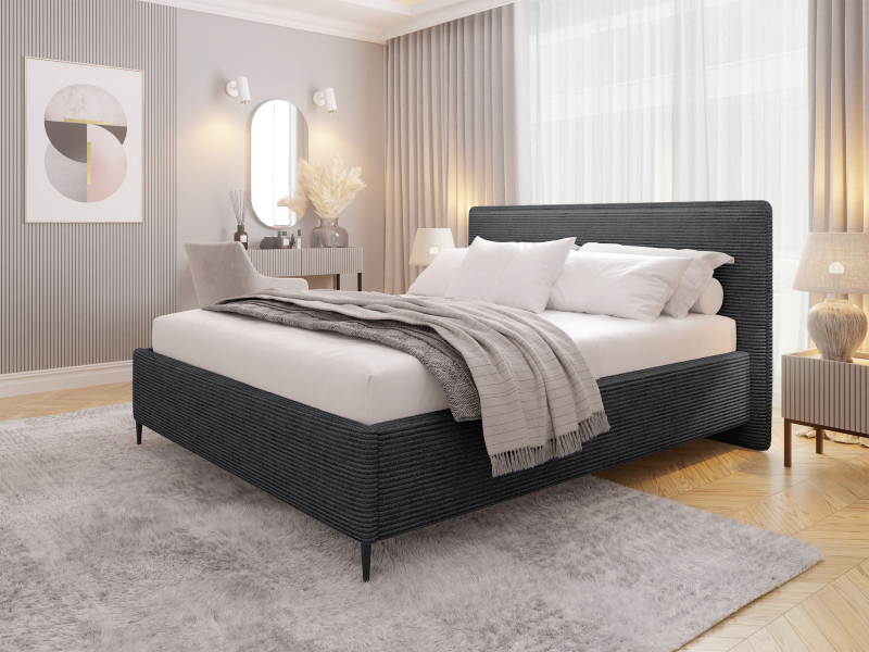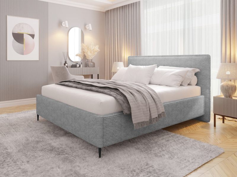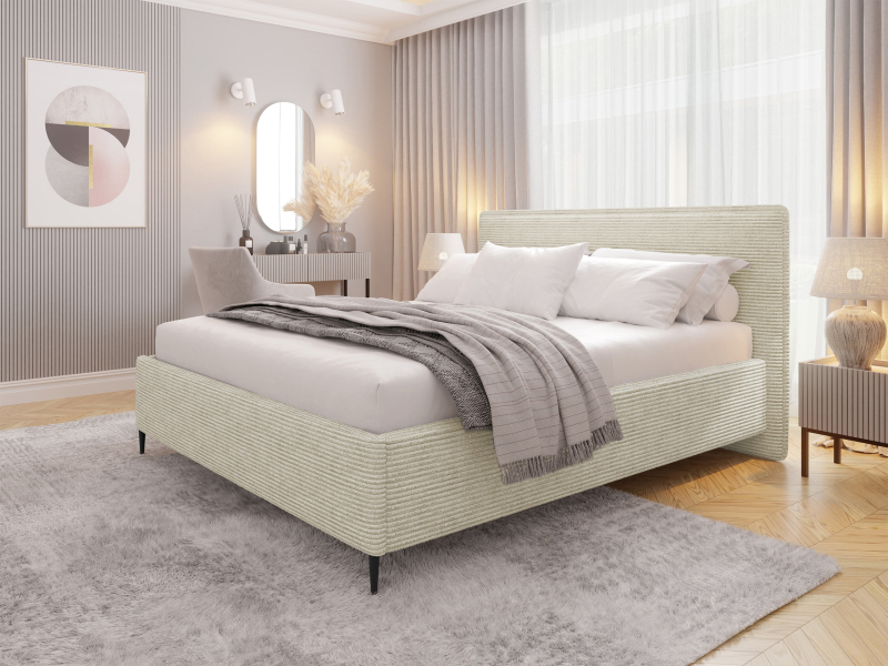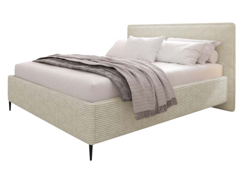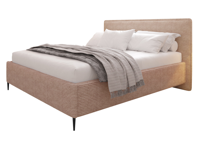 Roztavte se v pohodlí čalouněné postele Alecias Sztruks. Měkká čalouněná látka vás zahalí do spánku a v jejím okolí také jemně přivítáte nové ráno. Čalounění, příjemné na dotek, je jen jednou z výhod tohoto nábytku. Další je minimalistický design. Tvar, zbavený zbytečných dekorací, se perfektně hodí do jakéhokoli interiéru ložnice.