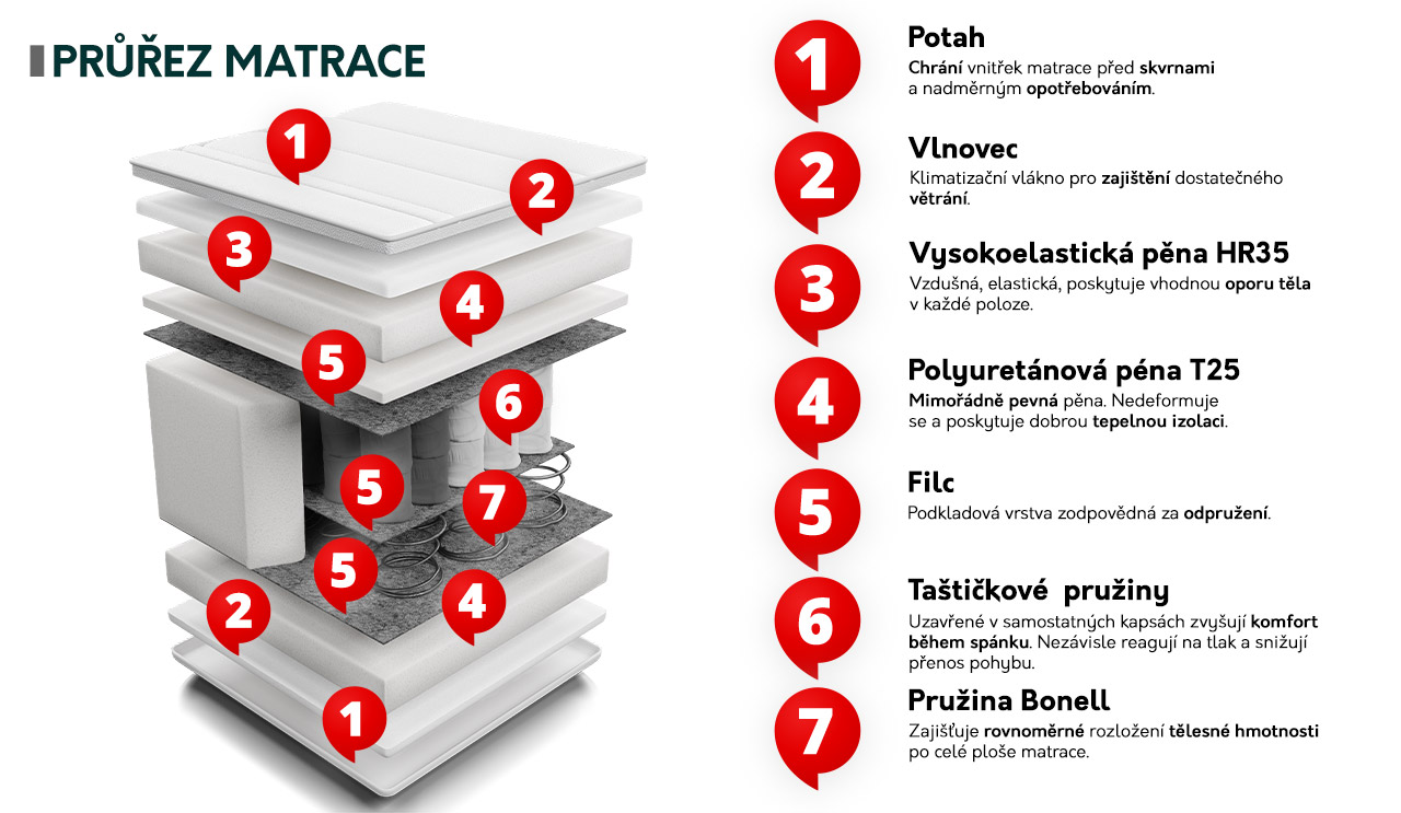 Tato matrace byl kromě elastické vložky vybaven vrstvami pěny zvyšujícími kvalitu odpočinku.