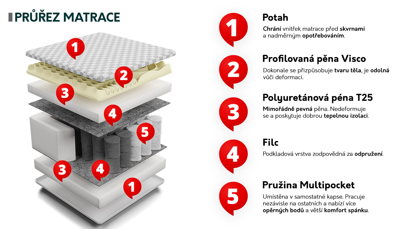 - multipocketový formát H-13 cm, 508 pružin / m2,