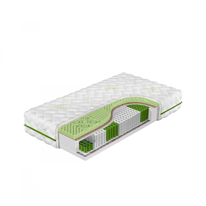 - vložka vyrobená z kapsových pružin, 7 zón, mají mnoho podpěrných bodů, což umožňuje udržovat přirozené křivky těla během spánku, každá pružina uvnitř produktu je umístěna v samostatném obalu, díky čemuž funguje nezávisle na ostatních,