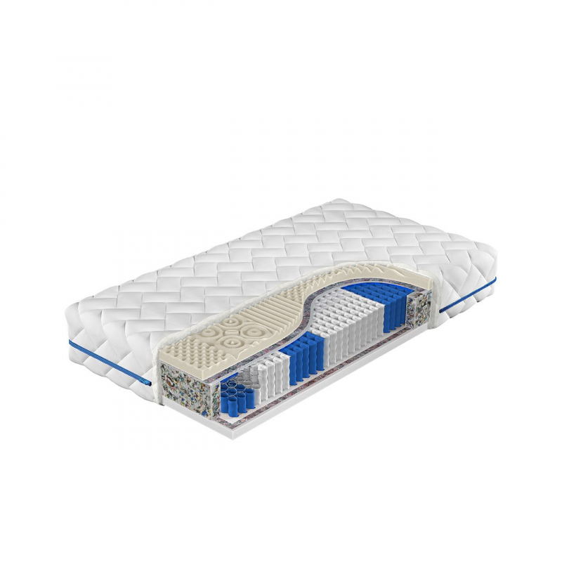 Kromě pružinového vstupu zde najdete také vrstvu masážní pěny s funkcí Memory Foam a polyuretanovou pěnu, která zajišťuje odpovídající měkkost a pružnost.