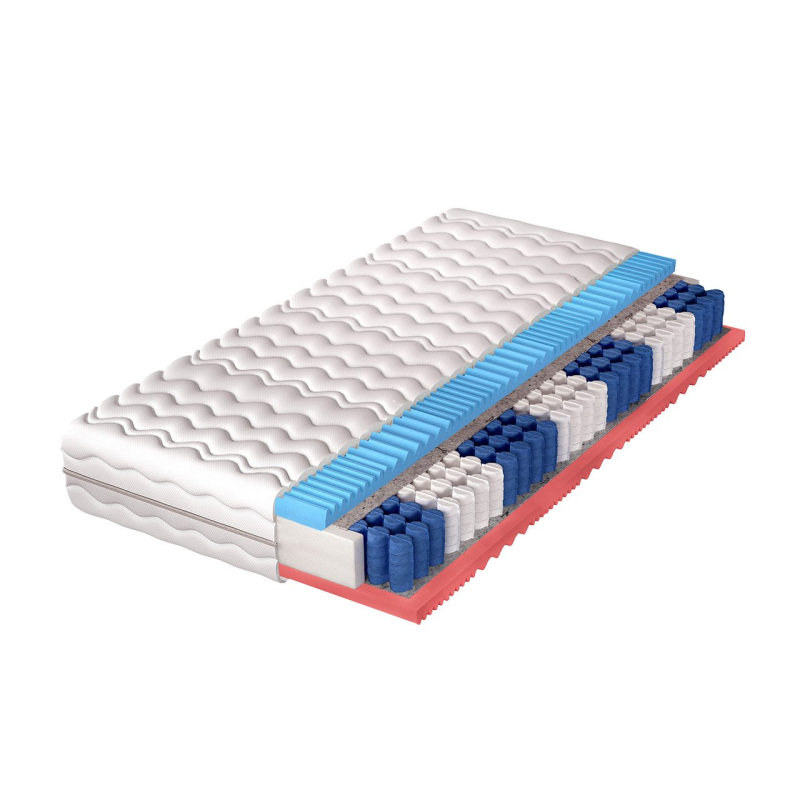 - vložka z taštičkových pružin, 7 zón, má mnoho opěrných bodů, což umožňuje zachovat přirozené křivky těla během spánku, každá pružina uvnitř produktu je umístěna v samostatné kapse, takže funguje nezávisle na ostatních,