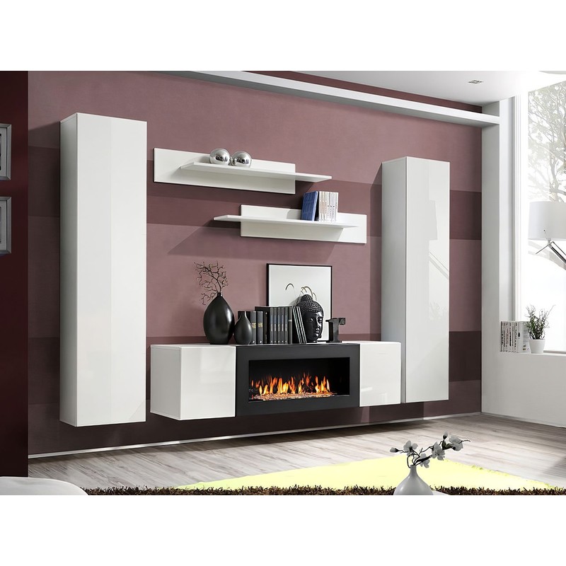 Moderní obývací stěna Franco je vhodná do prostorného obývacího pokoje, kde bude určitě výjimečným nábytkem. To vše díky vestavěné přední části TV skříně s biokrbem. Živý plamen a zářící záře z ní vytvářejí atmosféru útulnosti, pohodlí a bezpečnosti v místnosti.