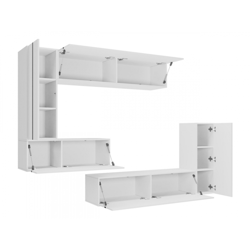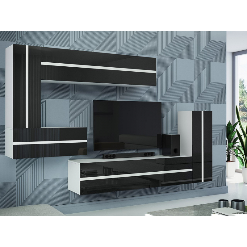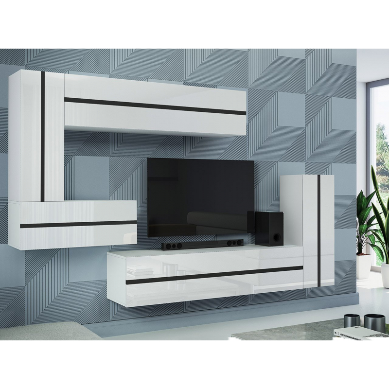 Nástěnná jednotka Marcos VIII se skládá ze tří závěsných televizních skříněk a dvou vitrín, které dokonale uspořádají váš prostor.