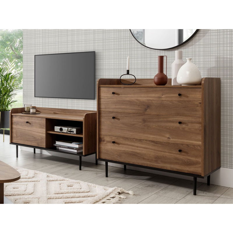 Dalším produktem je komoda, která nabízí 3 hluboké a prostorné úložné prostory pro praktické věci. Zásuvky jsou založeny na spodních pojezdech, takže jsou neviditelné, a další zpomalovač umožňuje tiché zavírání skříněk.