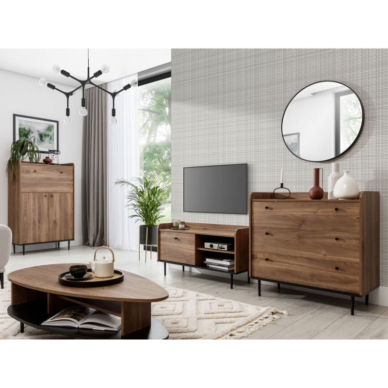 Sada pokojového nábytku se skládá z několika prvků. Patří mezi ně komoda, konferenční stolek, komoda s barem a TV stolek. Tyto modely jsou vybaveny dvířkami s tichým zavíráním, spodním montážním vedením se spomalovačem a plynovými vzpěri.