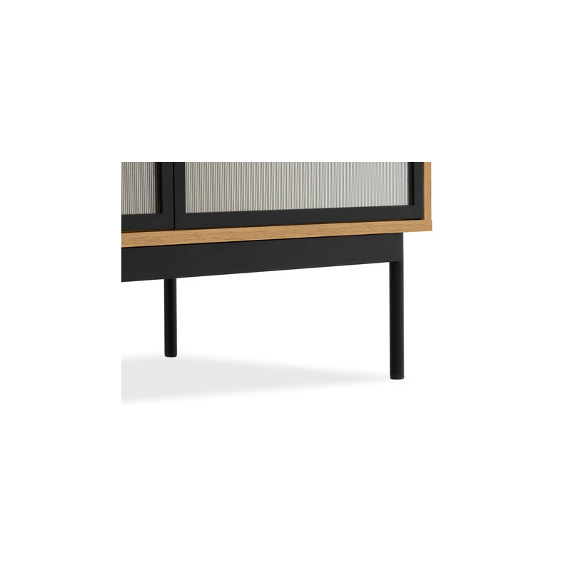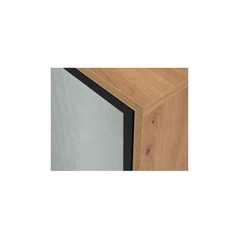 Sestava nábytku do obývacího pokoje Brulpin III spojuje moderní eleganci a mimořádnou praktičnost. Jeho charakteristickým prvkem jsou drážkovaná skleněná dvířka, která dodávají jedinečné kouzlo.