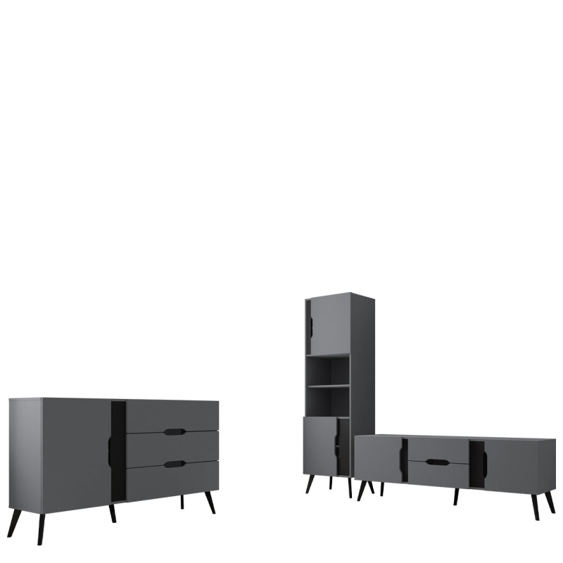 Všechny prvky této sestavy nábytku do obývacího pokoje spojují praktičnost a moderní design. Oslní skvělým vzhledem, inspirují k vytvoření originálních aranžmá a umožní vám projevit svůj vlastní styl. Každý z modelů byl namontován na nožičkách, což usnadňuje udržování pořádku. Jednotlivé prvky tohoto setu navíc nemají úchyty, což jim dodává osobitý charakter. Zajímavé barevné kombinace zapadnou téměř do každého projektu.