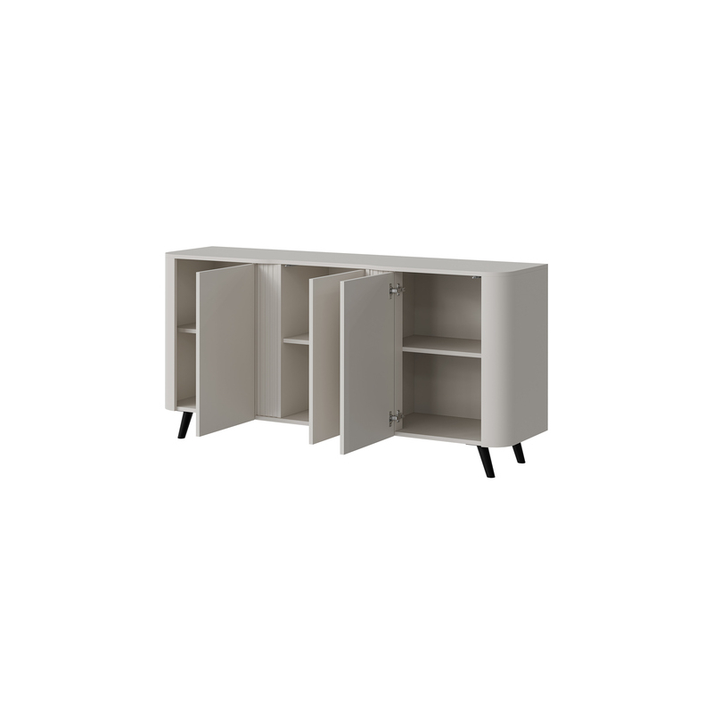 Zaoblené hrany a štíhlé vysoké nohy dodávají nábytku moderní, lehký vzhled. Horní část komody bude skvělým místem pro knihy, dekorace nebo vázu s květinami. Celé to působí velice stylově a hodí se do moderních interiérů.