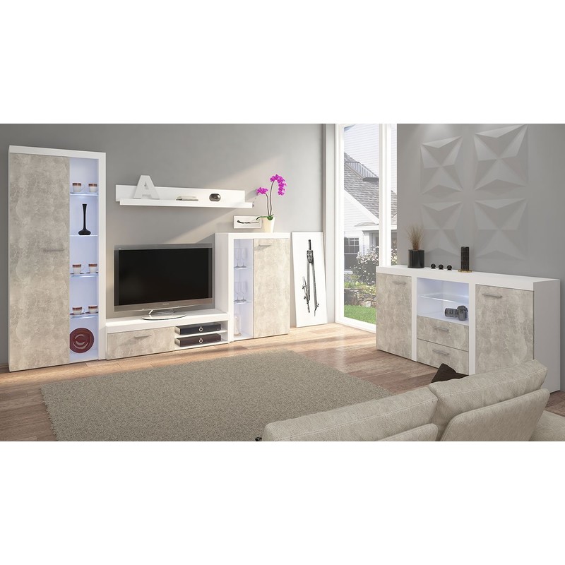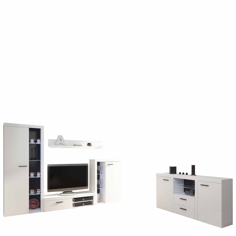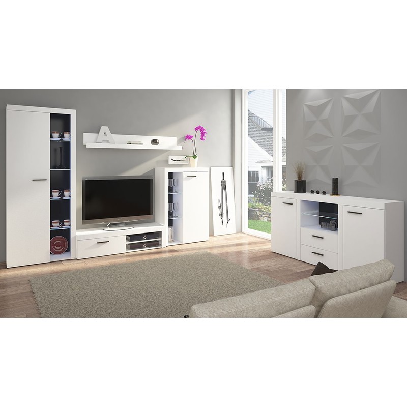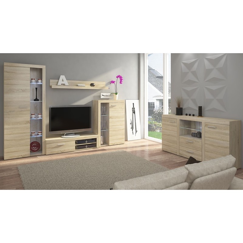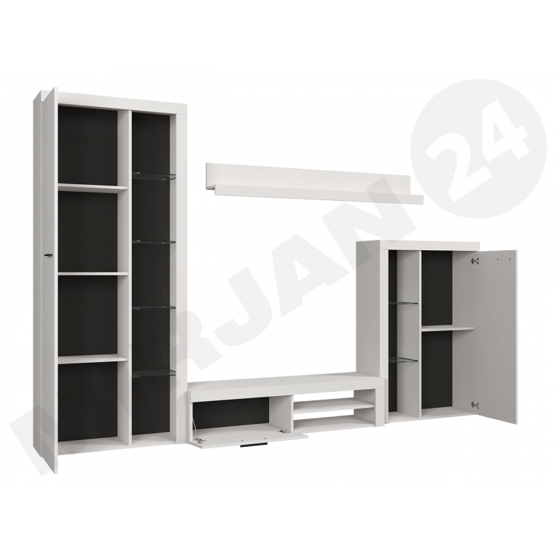 Rodos je kompaktní obývací stěna sestávající z prostorné RTV skříňky, dvou vitrín - nízké a vysoké, nástěnné police a komody. Tato sestava je určena do malých obývacích pokojů i do prostorných obývacích pokojů.