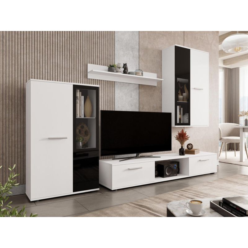 Obývací stěna Fiesta Fiesta je klasickým příkladem moderní sestavy nábytku. Stěna je vyrobena z laminované desky se strukturou dřeva, která vypadá úžasně v menších místnostech. Jednotlivé elementy ze sestavy je možné umístit samostatně přesně tak, aby se stěna přizpůsobila Vaší místnosti a stala se funkční. Skleněné části dodávají kouzlo a oživují celkový vzhled stěny. LED osvětlení je možné dokoupit za příplatek.