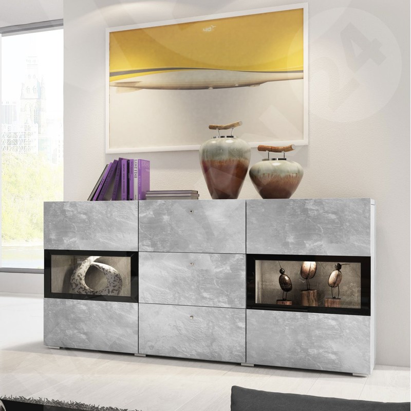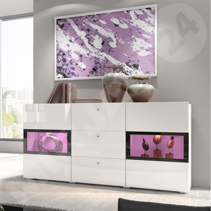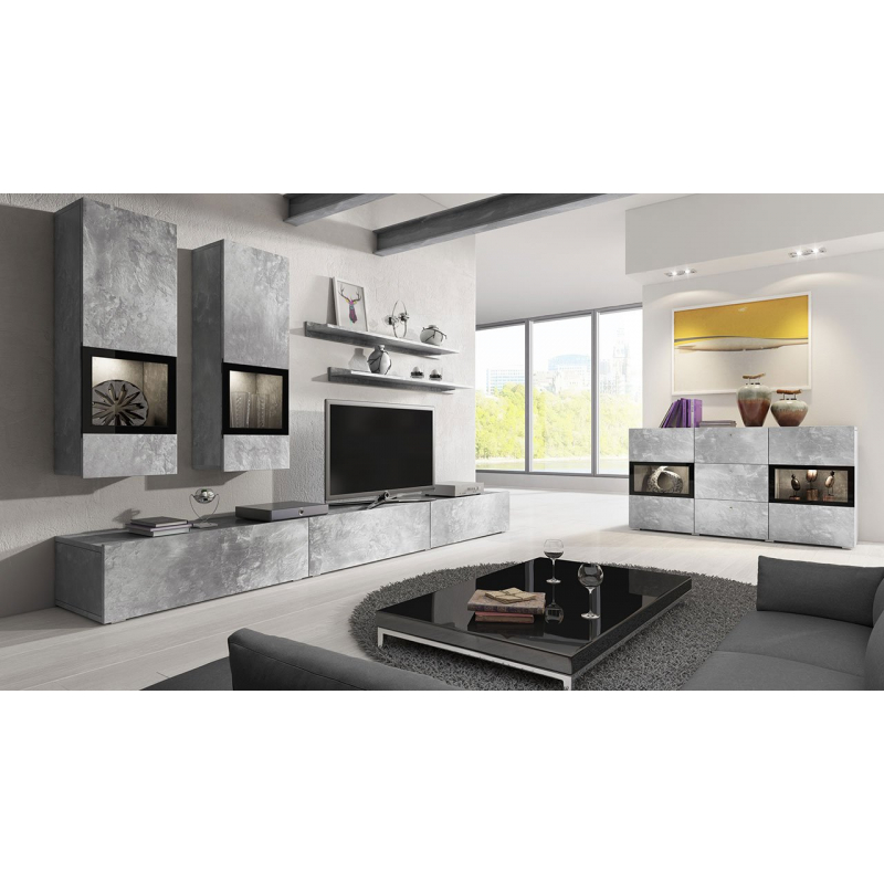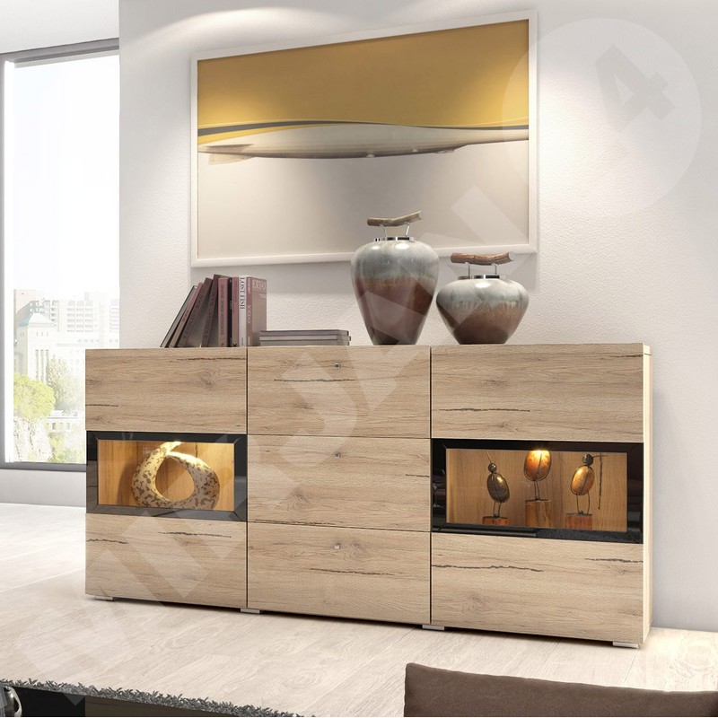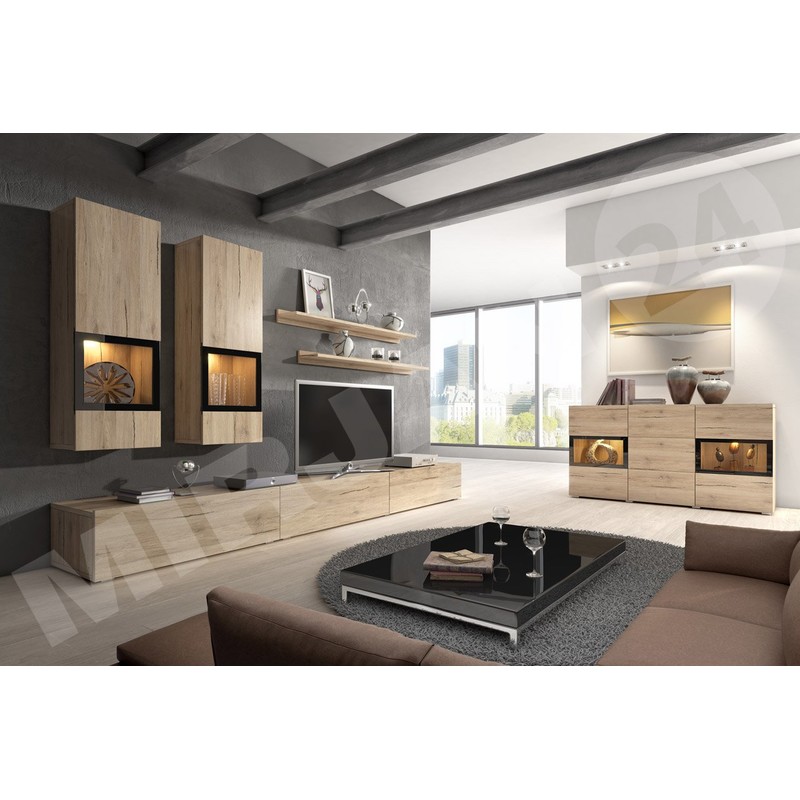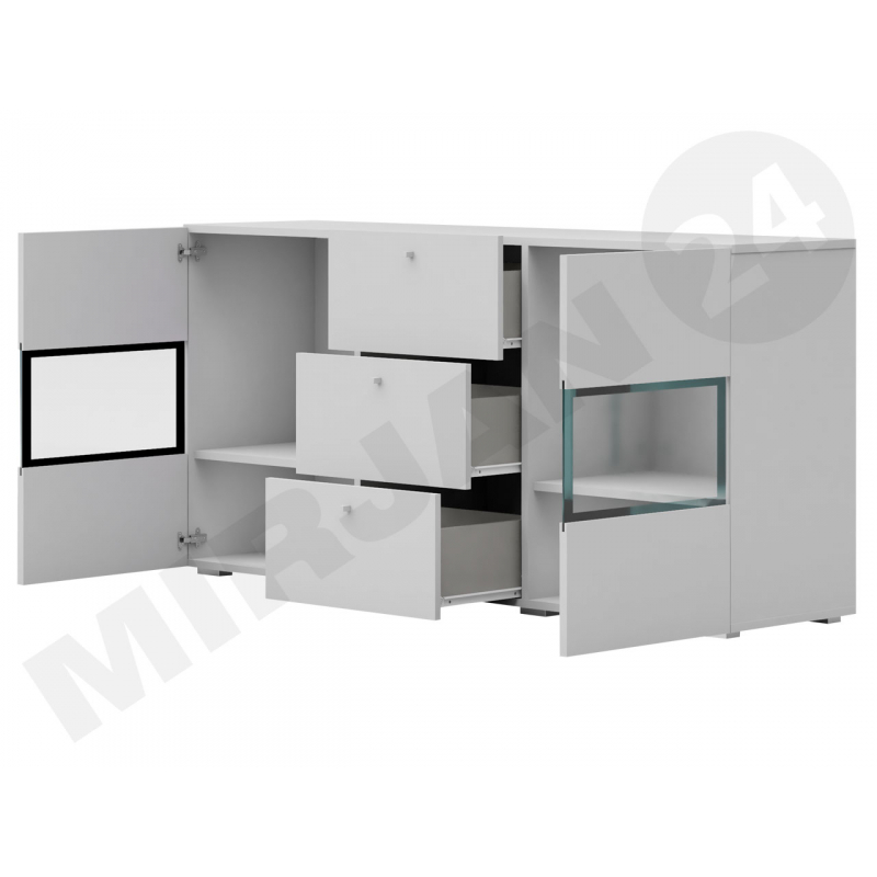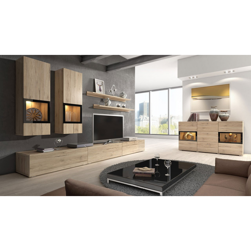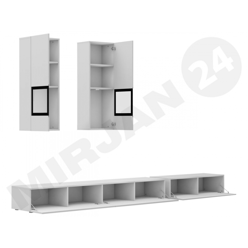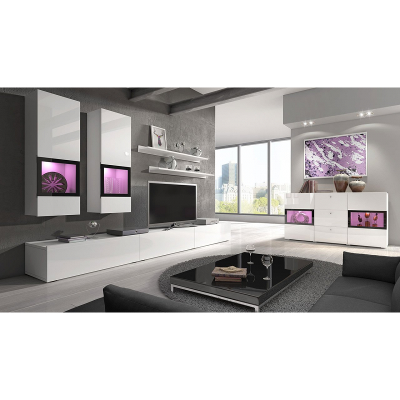 Nástěnná jednotka Baros s komodou je perfektní sestavou do velké, otevřené obýváku, kterou chceme aranžovat originálním a charakteristickým způsobem. Dvě závěsné vitríny se skleněnými policemi a doplňkovým LED osvětlením budou působit dojmem moderny a luxusu. Celou sestavu doplňuje komoda se skleněnými policemi, kterou lze také podsvítit LED diodami. K dispozici jsou dvě barevné verze: bílý / bílý lesk a struktura dřeva.