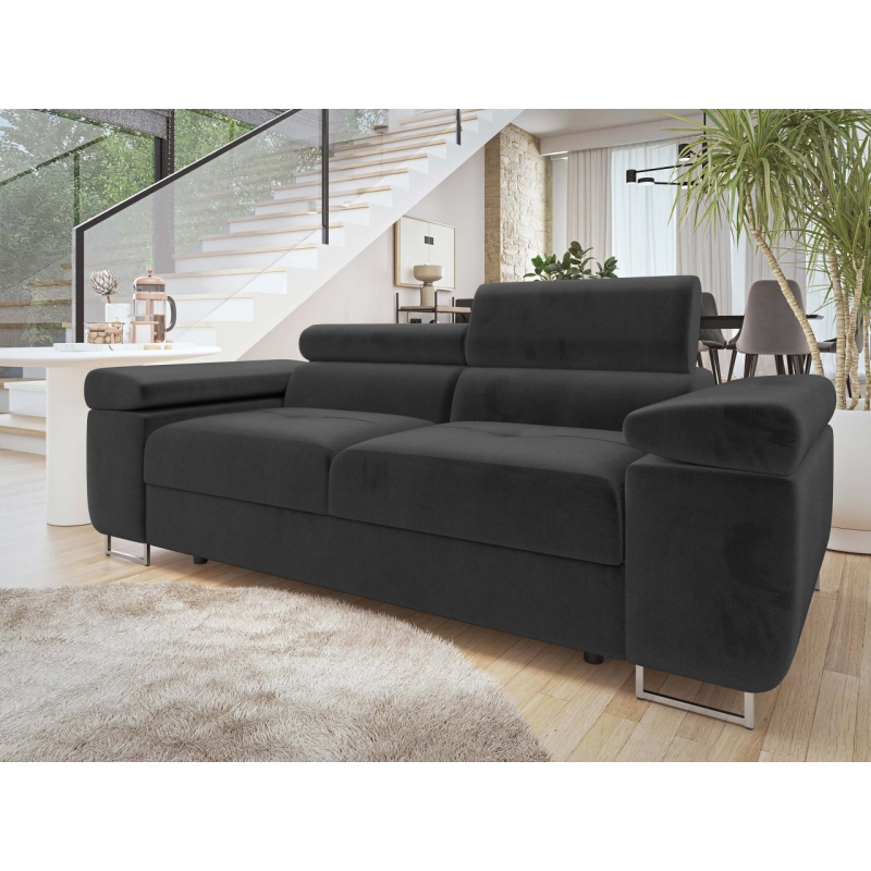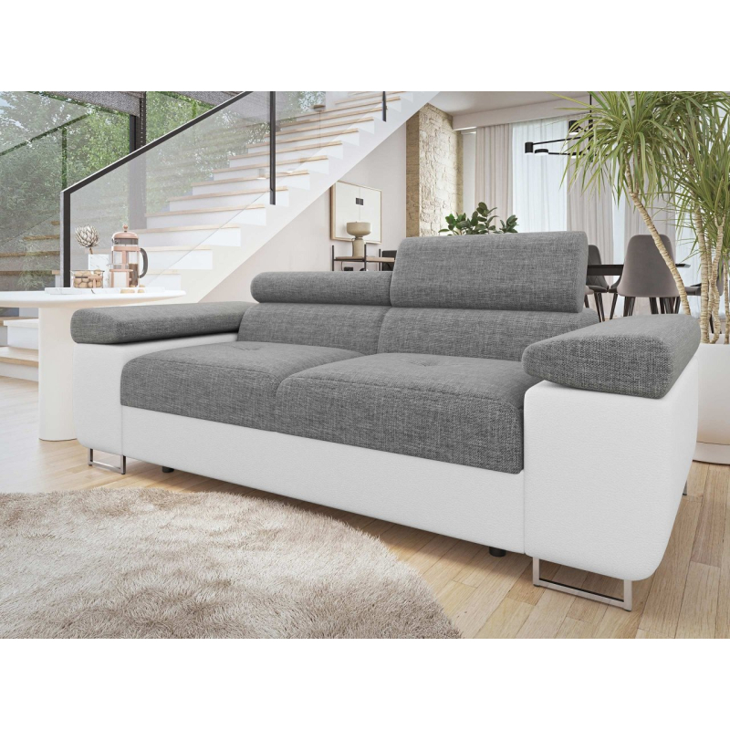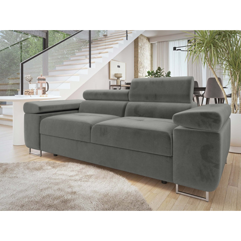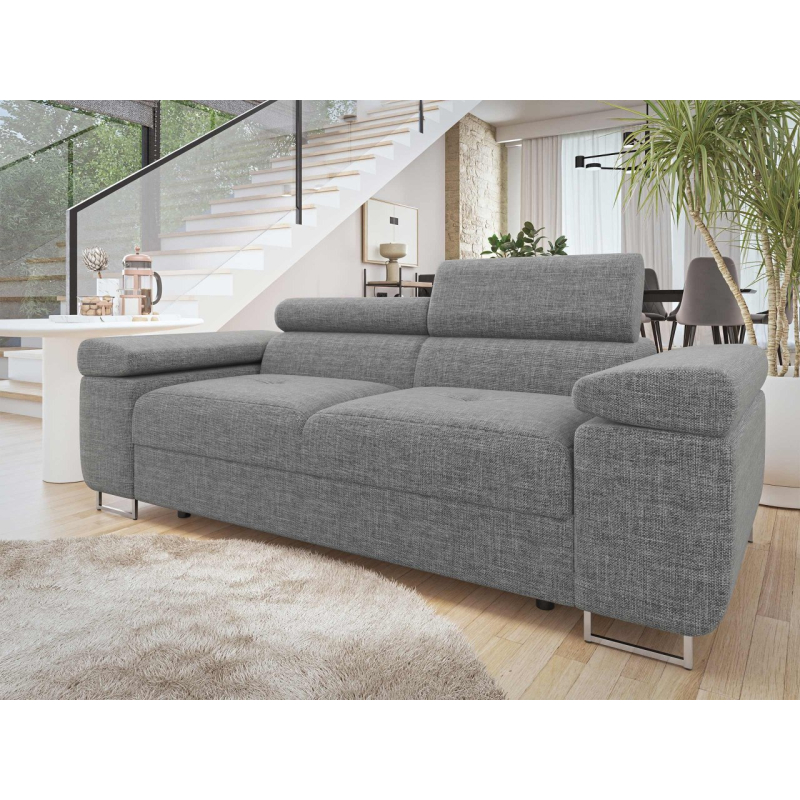 Pohovka Torezio II byla navržena s ohledem na pohodlí. Je ideální pro odpolední relaxaci ve dvou. Její moderní tvar zdůrazňuje styl a pohodlí. Nastavitelné opěrky hlavy vám umožňují přizpůsobit pohovku vašim individuálním preferencím a poskytují optimální oporu pro hlavu a krk. Hluboké sedadlo potažené měkkou látkou vybízí k relaxaci před televizí. Stříbrné kovové nohy se zajímavým tvarem jsou výrazným akcentem. Design této obývací pohovky se perfektně hodí do mnoha interiérů.