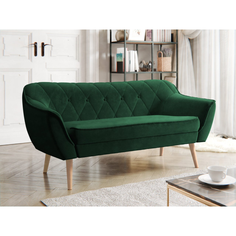 Prezentovaná dvoumístná pohovka se skládá z dřevěné kostry, sedáku a opěráku, obohacené o dekorativní prošívání. Jedná se o volně stojící model, který umožňuje libovolně umístit pohovku na libovolné místo v místnosti.