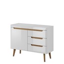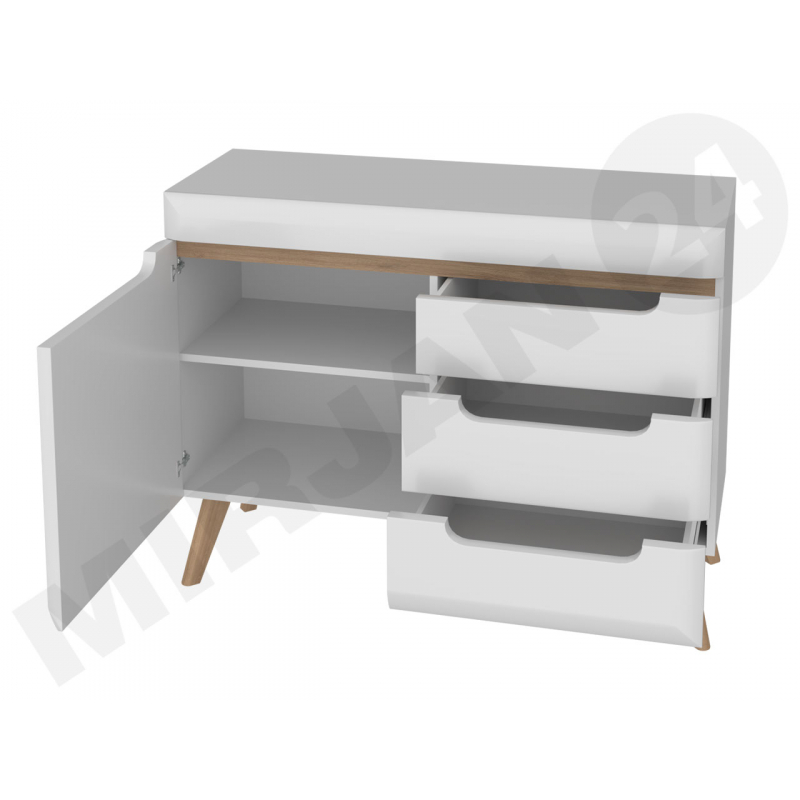 Kombinovaná komoda Nirus NKSZ107 spojuje skandinávský styl s modernějším designem. Módní barvy doplňuje jemná dekorace v kontrastních odstínech. Expresivní charakter komody dokonale ladí s vybavením obývacího pokoje, ložnice i módní předsíně. Nábytek je vybaven řadou prostorných zásuvek a zamykatelnou skříňkou, což usnadňuje uskladnění doplňků i větších předmětů. Komoda je vyrobena z kvalitních komponentů, díky čemuž lahodí oku skvělým vzhledem.