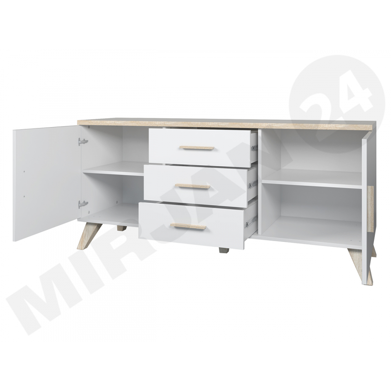Komoda se zásuvkami a otevíracími policemi, má velké množství prostoru pro uložení různých věcí. Na desku stolu můžeme umístit dekorace do pokoje, rámečky s vašimi oblíbenými fotografiemi a dokonce i televizi.