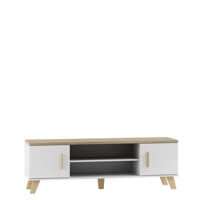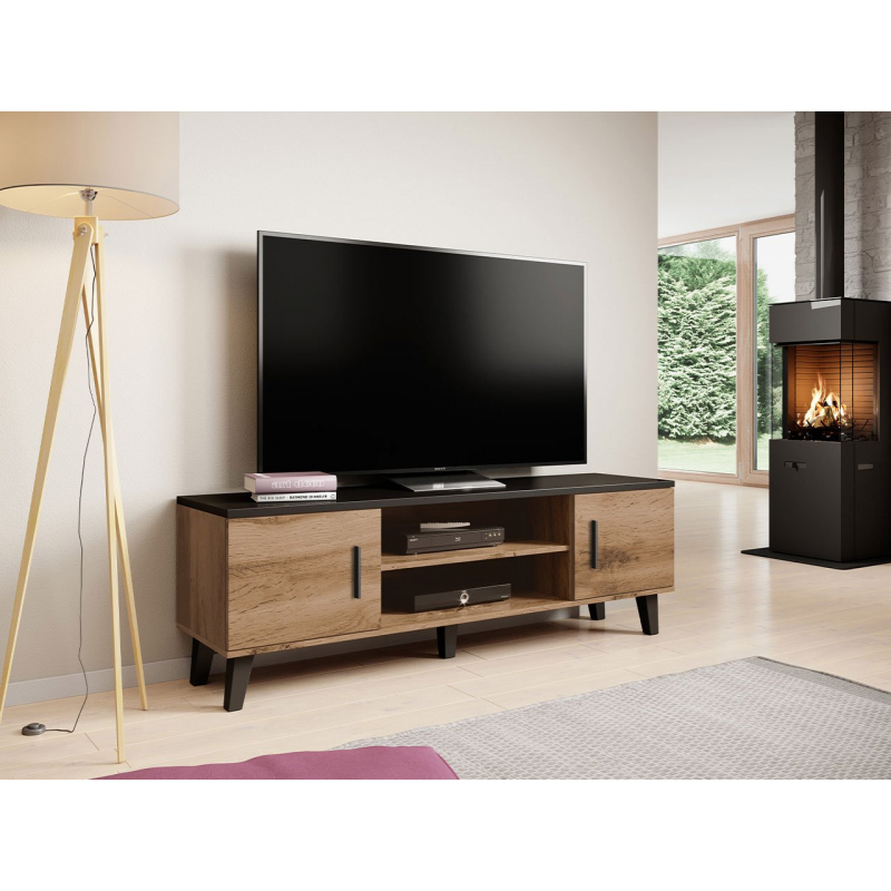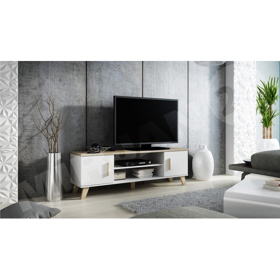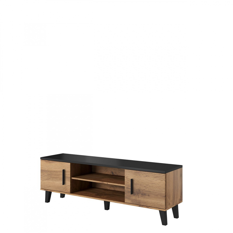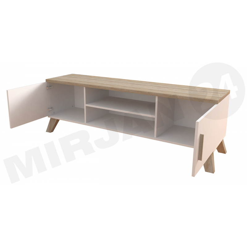 Skříňka může být základem pro TV přijímač a police budou ideální pro další elektronická zařízení. Nábytek bude ideální pro uložení disků s vaší oblíbenou hudbou nebo filmy. Nohy a rukojeti jsou vyrobeny ze dřeva.