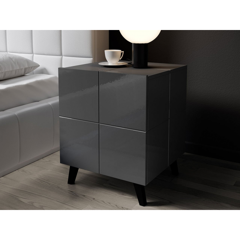 - korpus, front, horní část: lesklá frézovaná deska MDF,