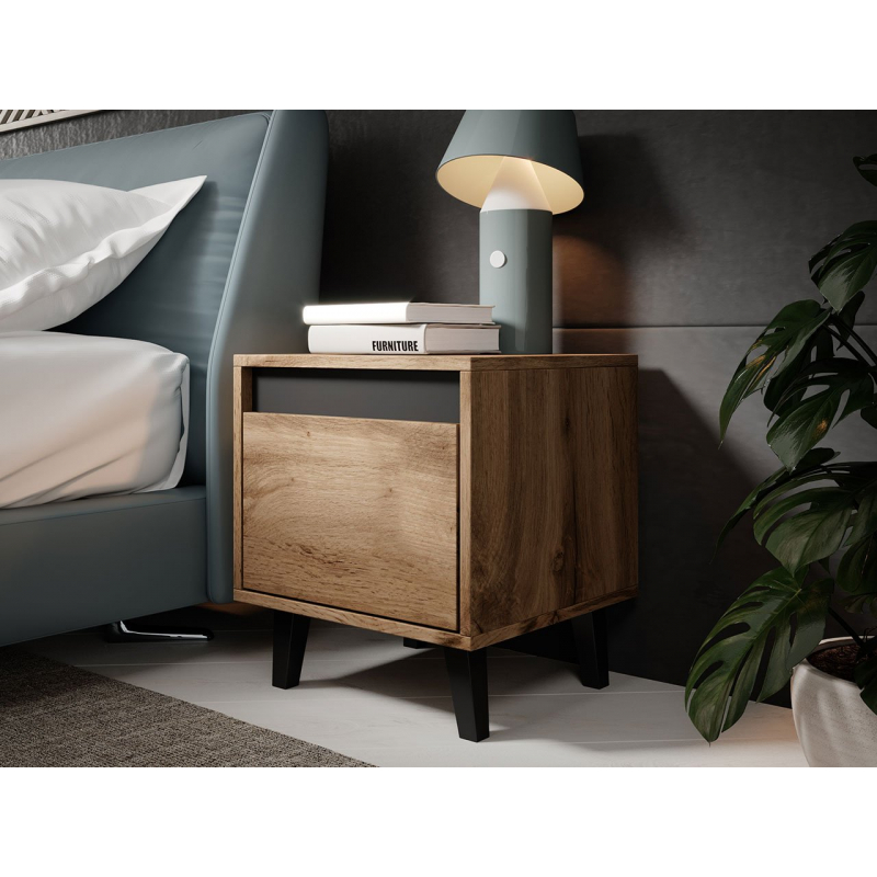 Hrany nočních stolků jsou pokryty dýhou, která je odolná proti každodennímu poškození. Díky tomu vám souprava vydrží mnoho let. Model je vybaven praktickým systémem otevírání přední části "Push to Open". Používání nábytku nebylo nikdy pohodlnější.