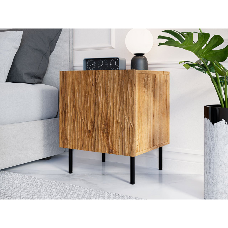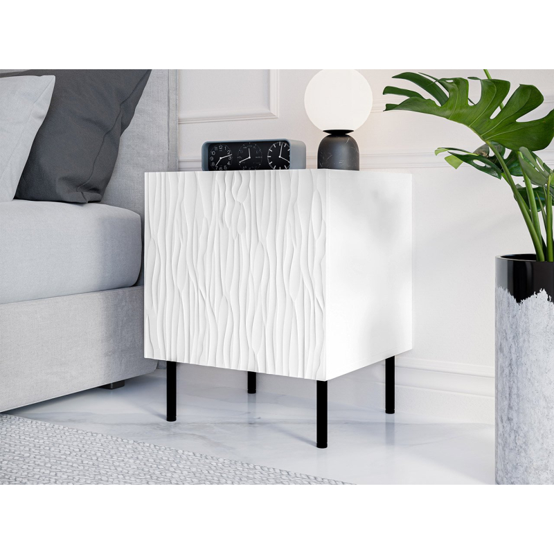 Sada nočních stolků se skládá ze dvou kusů nábytku usazených na nožkách. Uvnitř se nachází praktická přihrádka na předměty, které se hodí mít vždy po ruce. Otevírají se díky systému PUSH TO OPEN. Skříňky vypadají mimořádně elegantně a jejich další výhodou jsou kovové nožky pro snadné čištění.