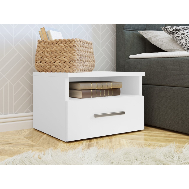 Noční stolek je nezbytnou součástí každé ložnice. Je mimořádně užitečný ráno, odpoledne i večer. Můžete si na něj odložit knihu nebo brýle. Najdete na něm také místo na sklenici horkého čaje. Zásuvku lze využít také pro elektronické přístroje, kosmetické přípravky a různé drobnosti. Mimořádně praktický a stylový doplněk vedle postele.