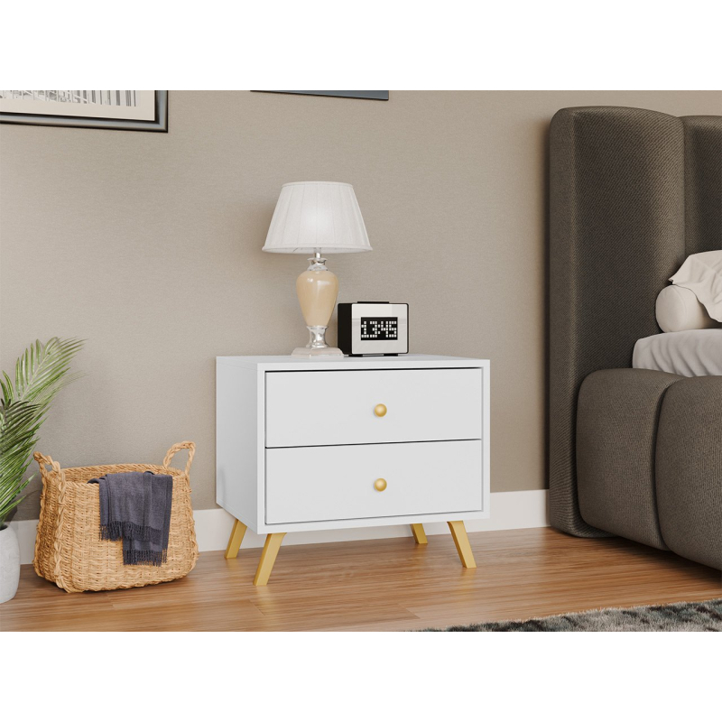 Noční stolek Astrodon je malým nezbytností v každé ložnici. Poskytuje místo pro odložení věcí potřebných hned po probuzení, jako jsou brýle, léky nebo sklenice vody. Jeho stolní deska nabízí i zónu pro noční lampu nebo jiné doplňky. Dvě prostorné zásuvky poskytují dostatek prostoru pro kosmetiku, nabíječku na telefon nebo vaše oblíbené knihy.