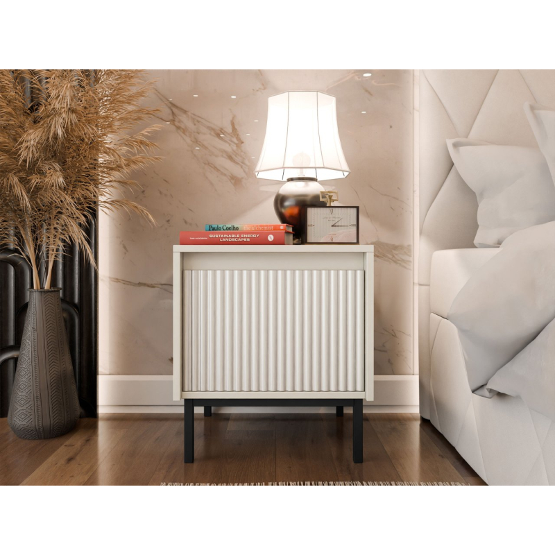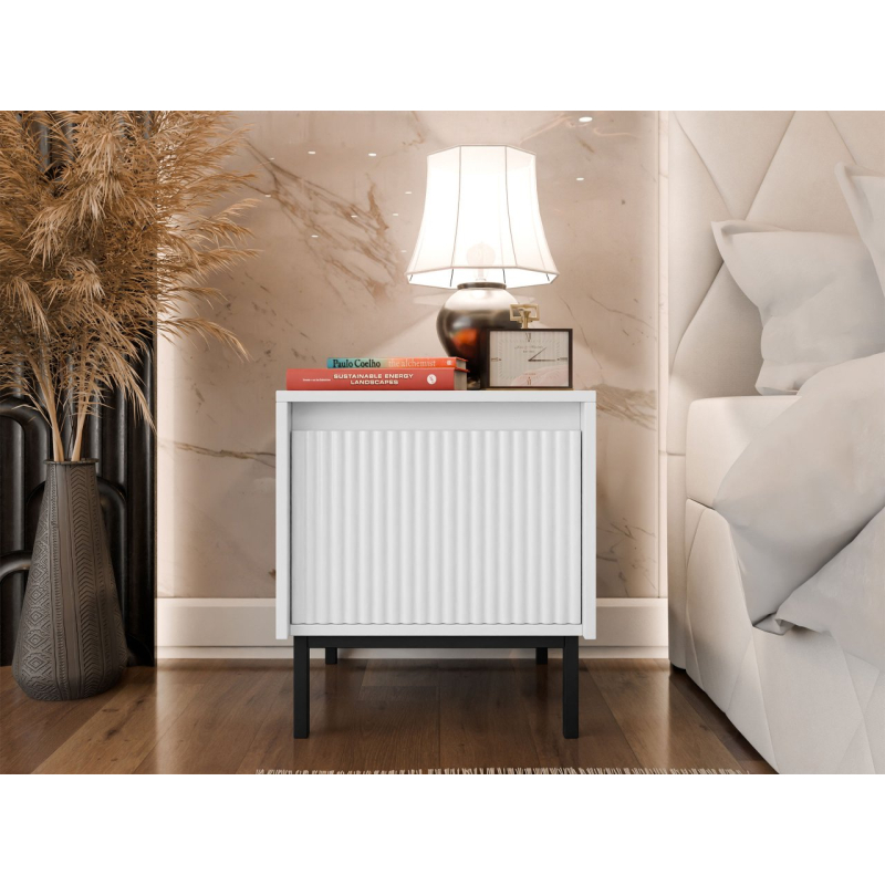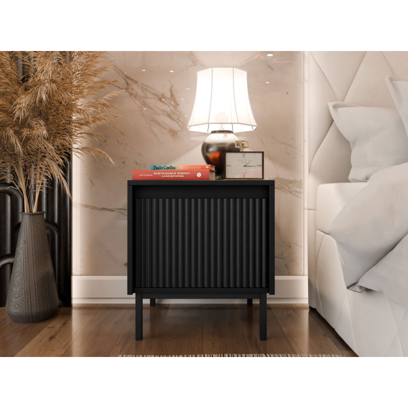 Drážkovaný noční stolek Samker 1SZ je skvělý způsob, jak vyplnit prostor vedle postele. Poskytne další úložný prostor a zároveň dodá ložnici velkolepý efekt. Noční stolek se zásuvkou se vyznačuje jedinečným designem plným stylu a třídy. Díky němu získáte prostornou přihrádku na organizování kosmetiky, knih nebo jiných užitečných věcí po ruce.