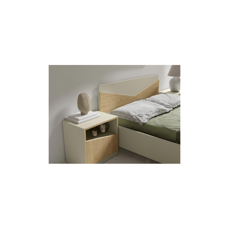 Svěží styl nočního stolku podtrhuje příčně řezané čelo. Je to drobný detail, který dodává nábytku zajímavý charakter a tím ho uvádí do dekoru celého interiéru. Módní doprovod podporuje kombinaci módních barev.